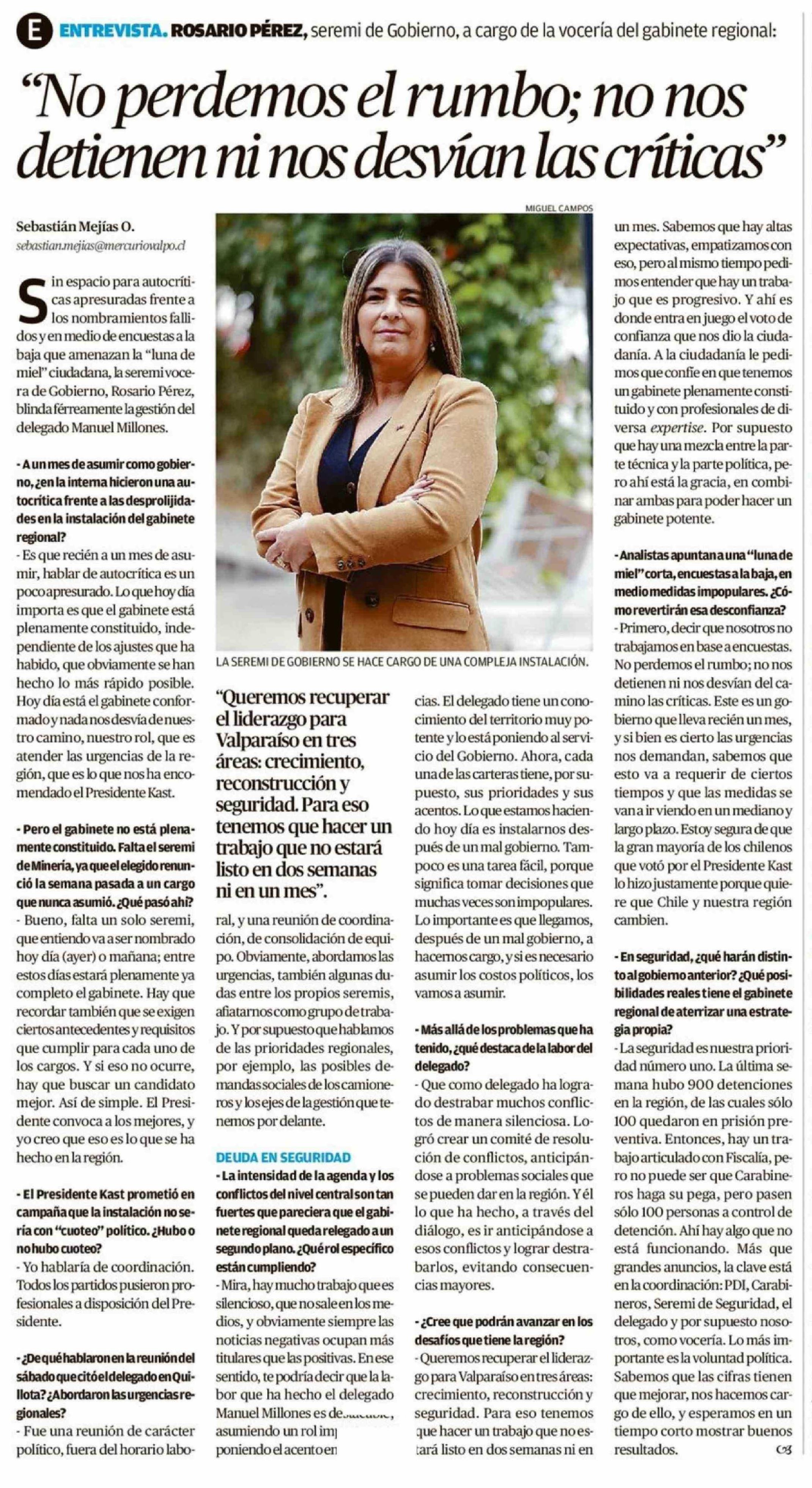 "No perdemos el rumbo; no nos detienen ni nos desvían las críticas" 17-04-2026 El Mercurio de Valparaíso |