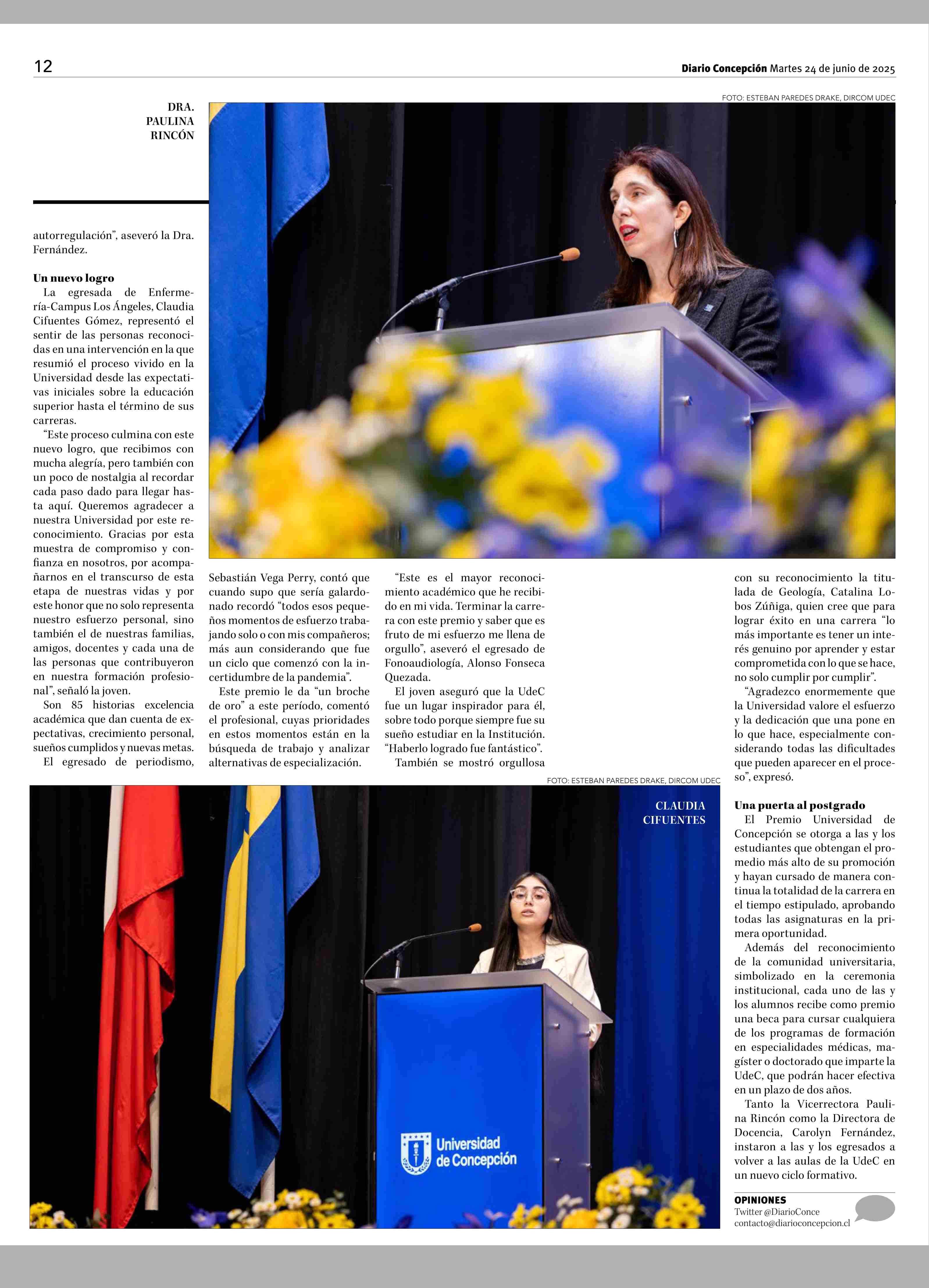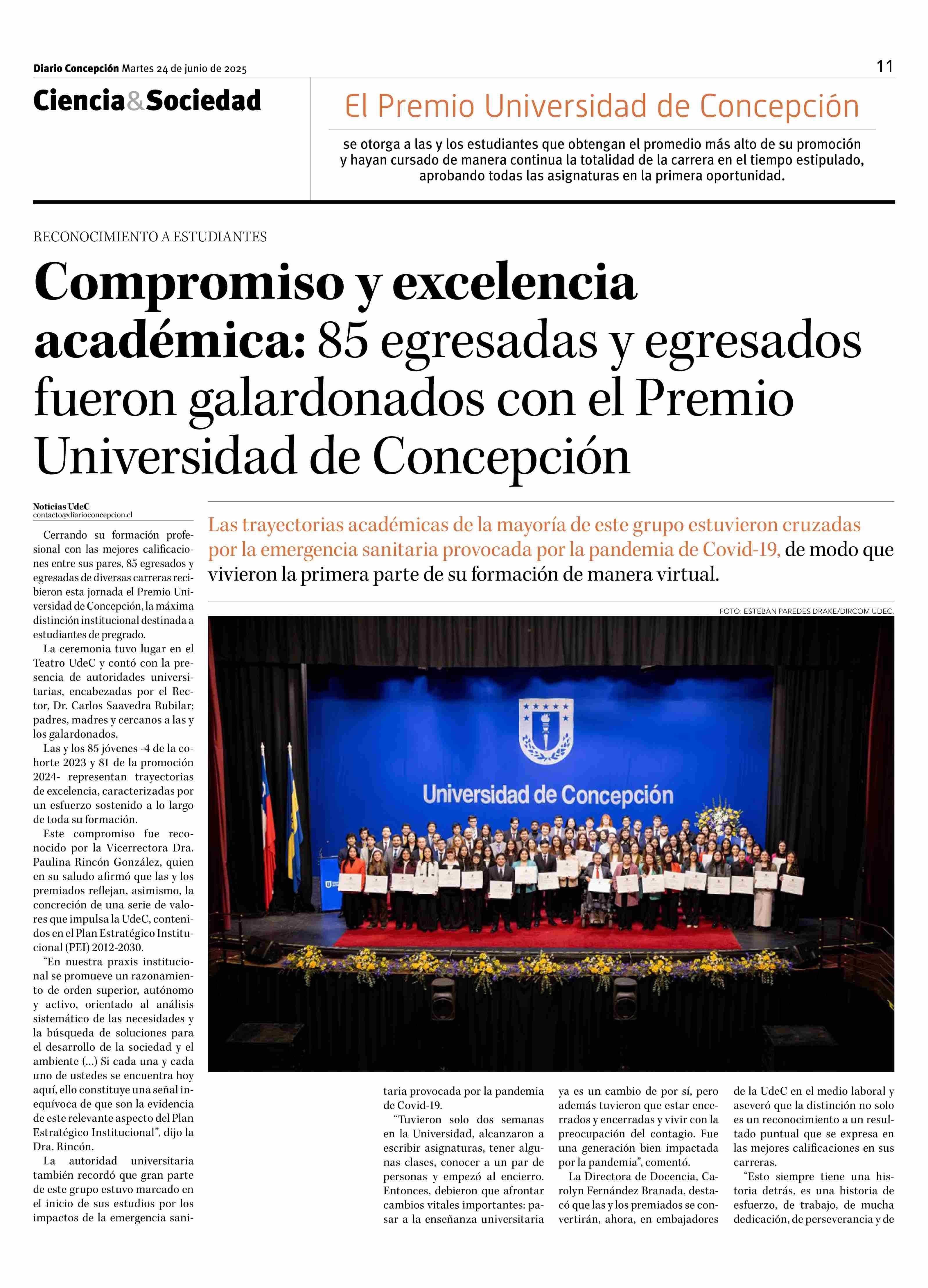 Compromiso y excelencia académica: 85 egresadas y egresados fueron galardonados con el Premio Universidad de Concepción 24-06-2025 Diario Concepción |