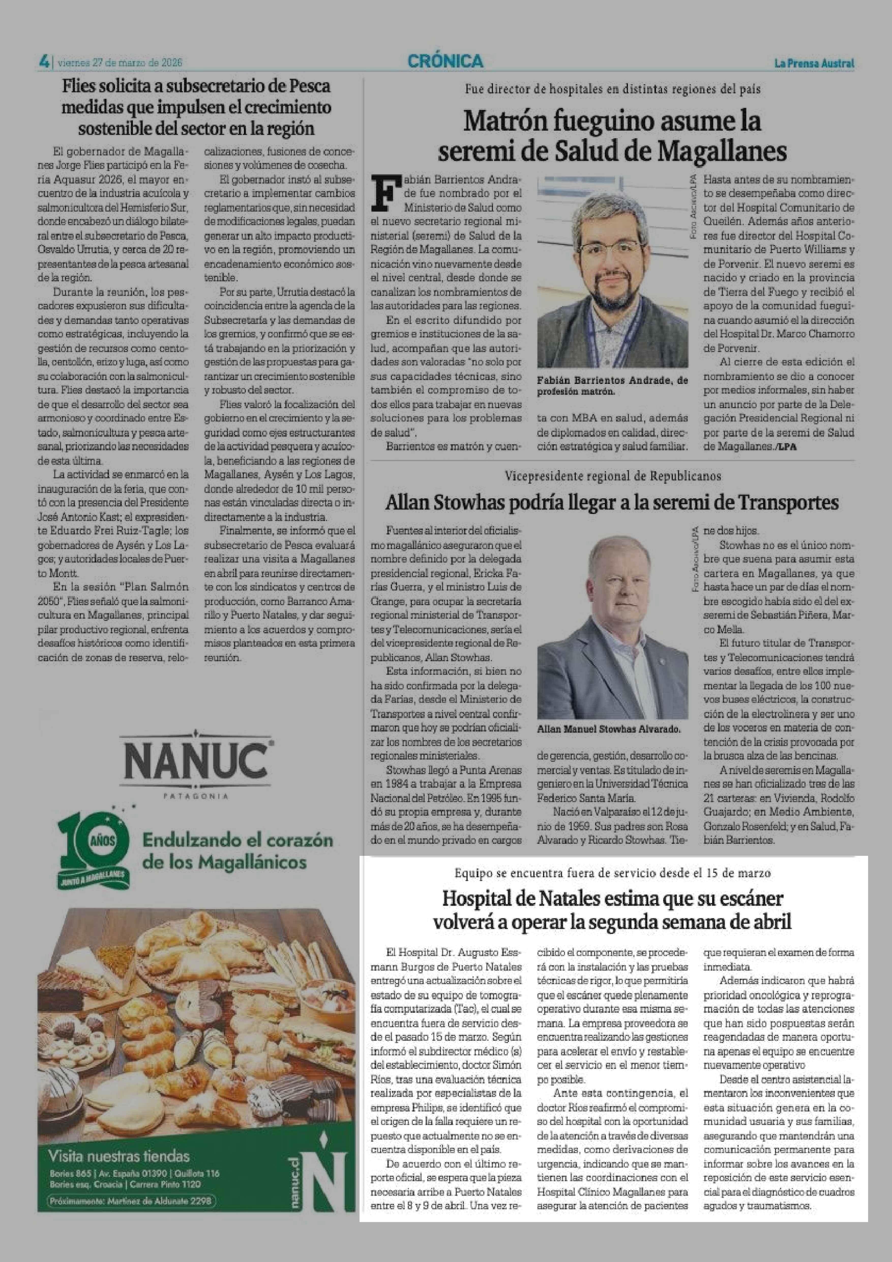 Fecha: 27-03-2026 Sector: Noticia general Región: Región de Magallanes y de la Antártica Chilena