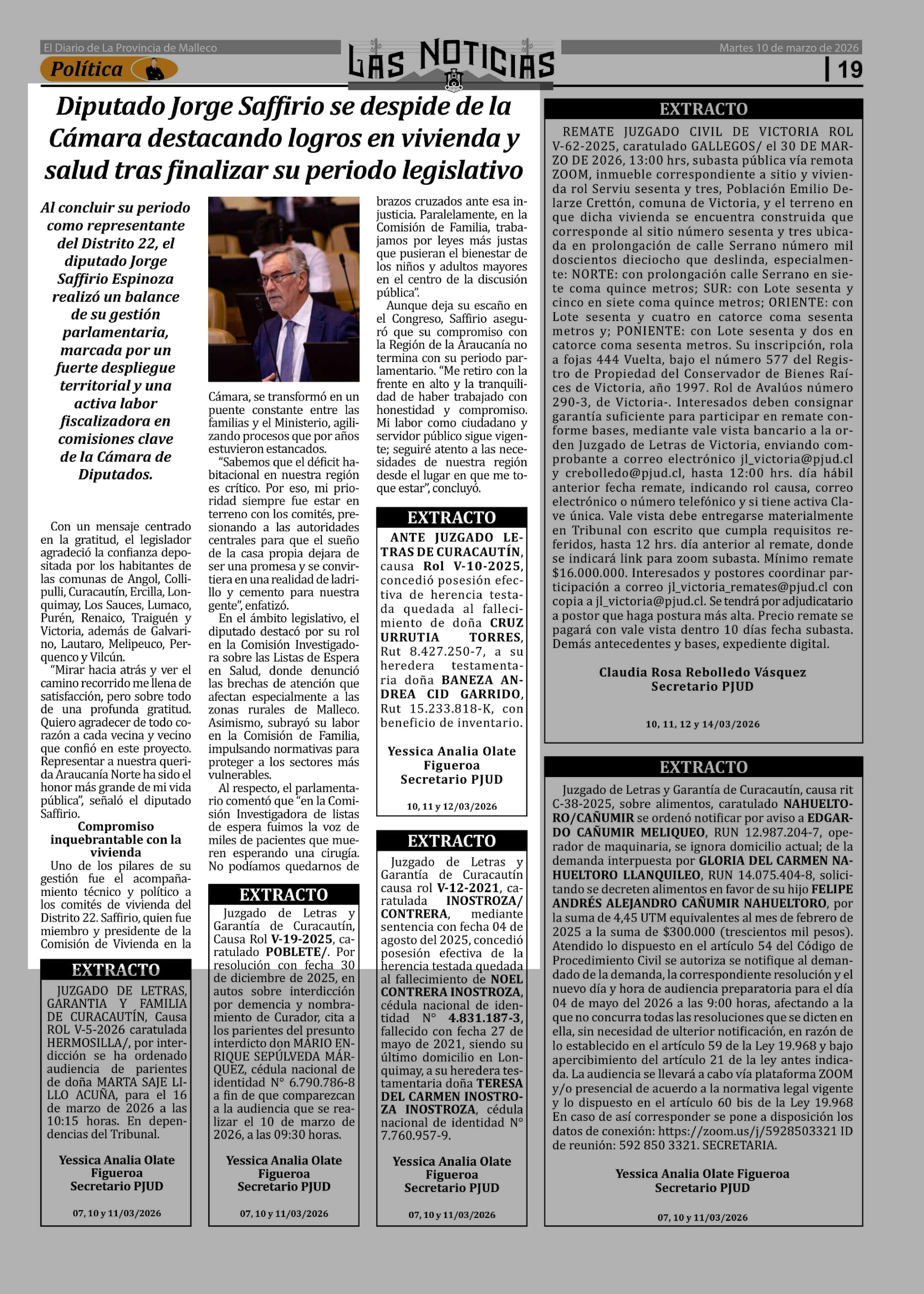 | Fecha: | 10-03-2026 | Sector: | Noticia general | Región: | Región de la Araucanía |