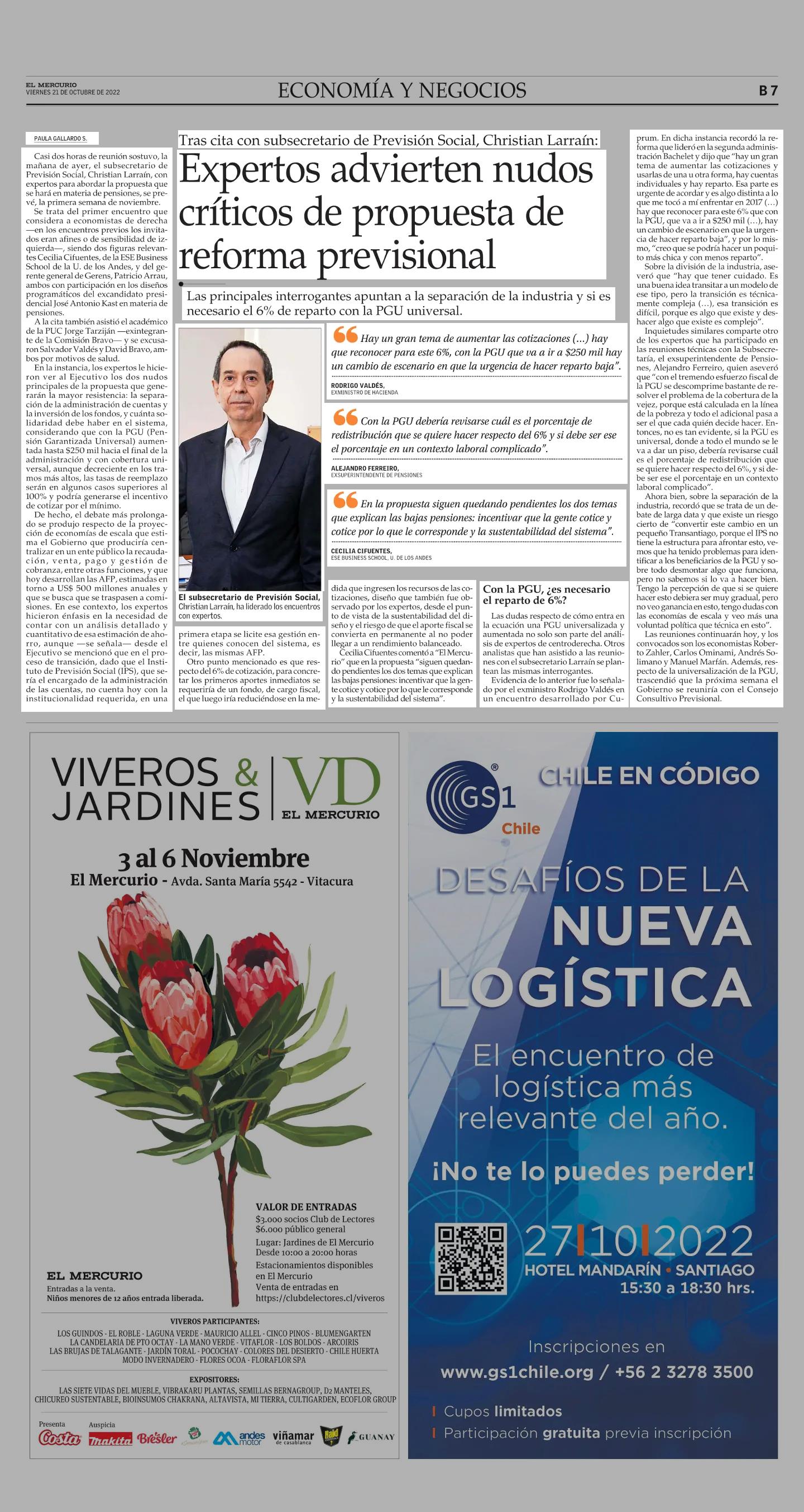Expertos advierten nudos críticos de propuesta de reforma previsional 21-10-2022 El Mercurio |