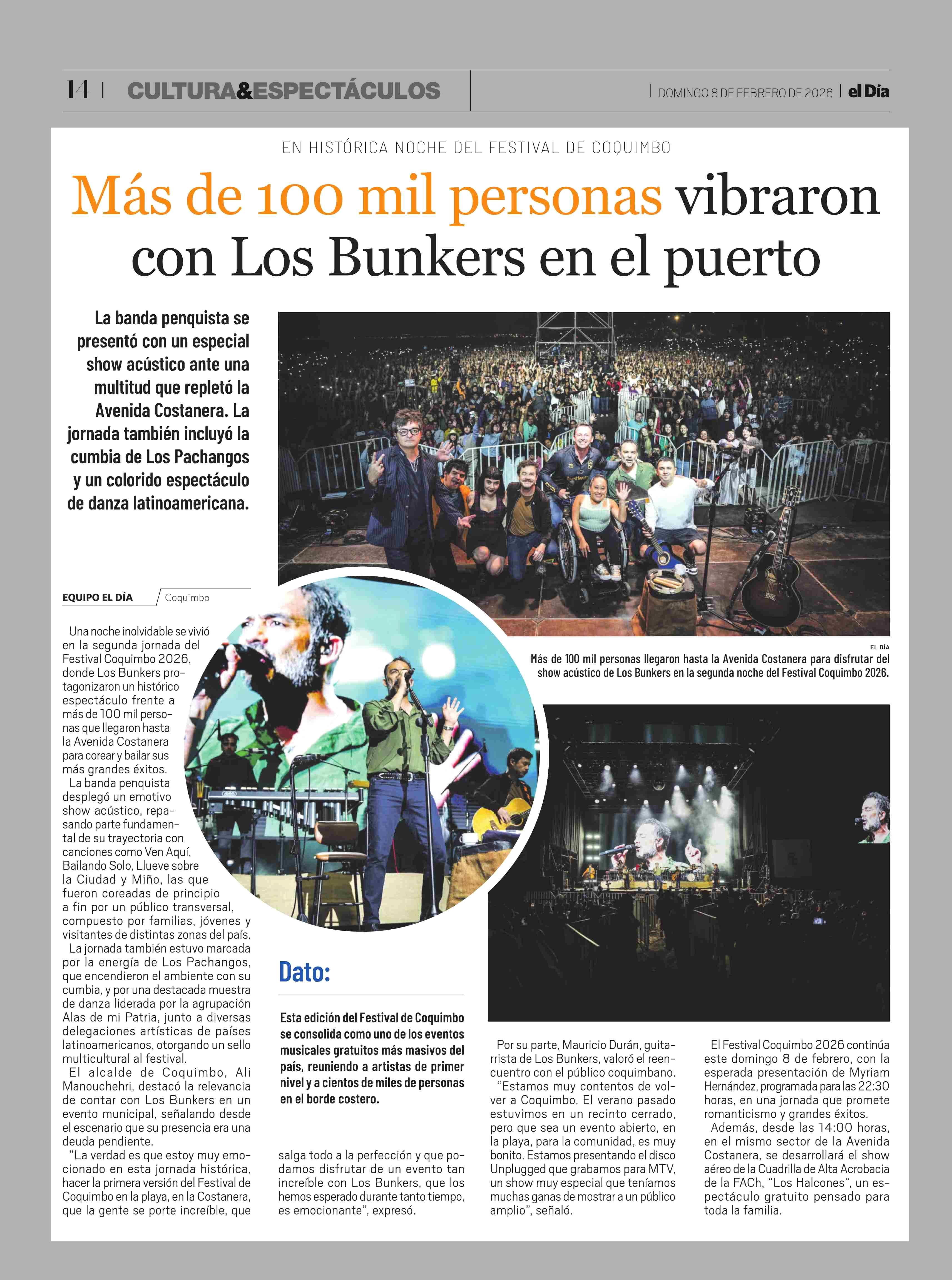 Más de 100 mil personas vibraron con Los Bunkers en el puerto 08-02-2026 El Día |