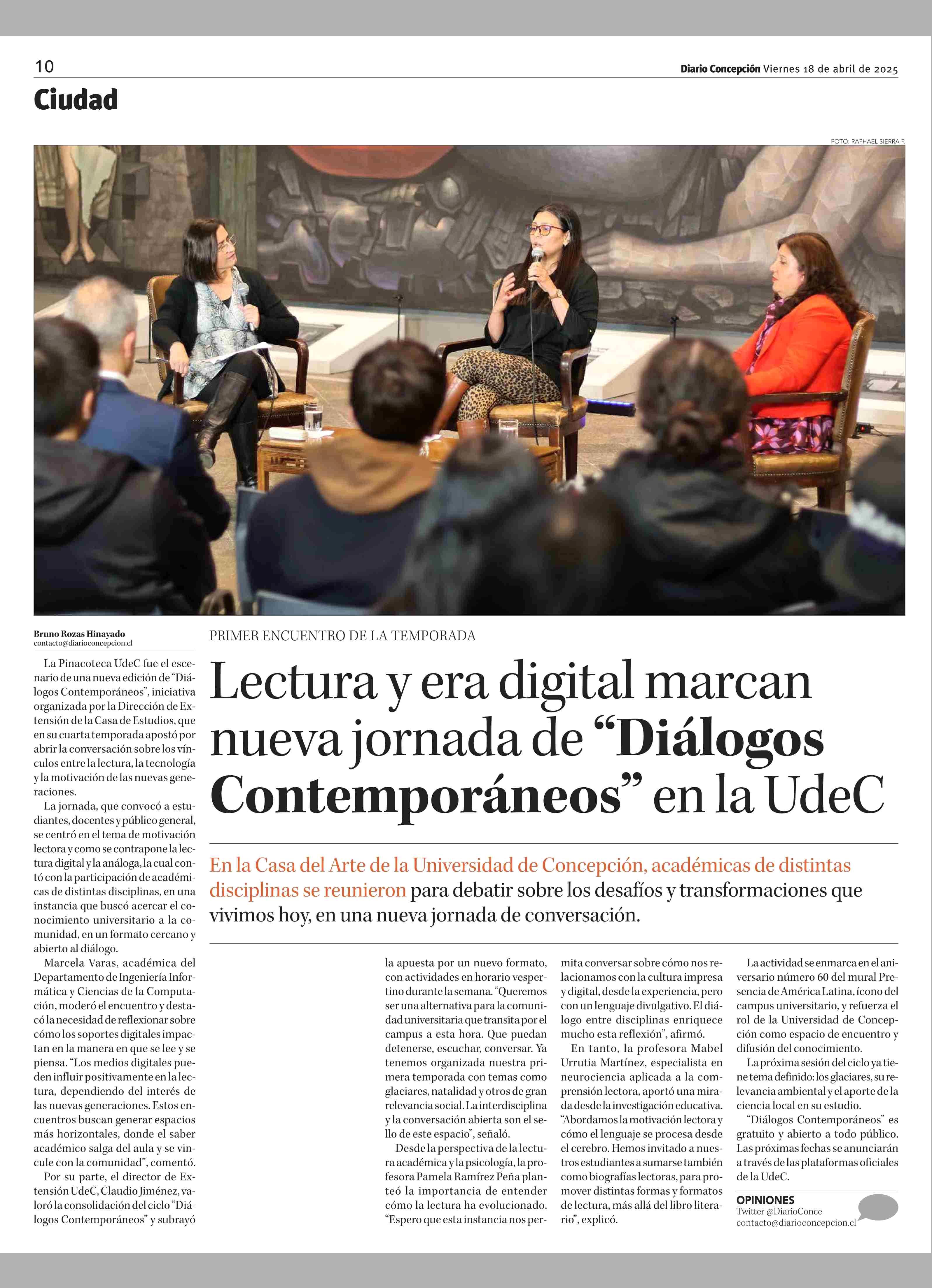 Lectura y era digital marcan nueva jornada de "Diálogos Contemporáneos" en la UdeC 18-04-2025 Diario Concepción |