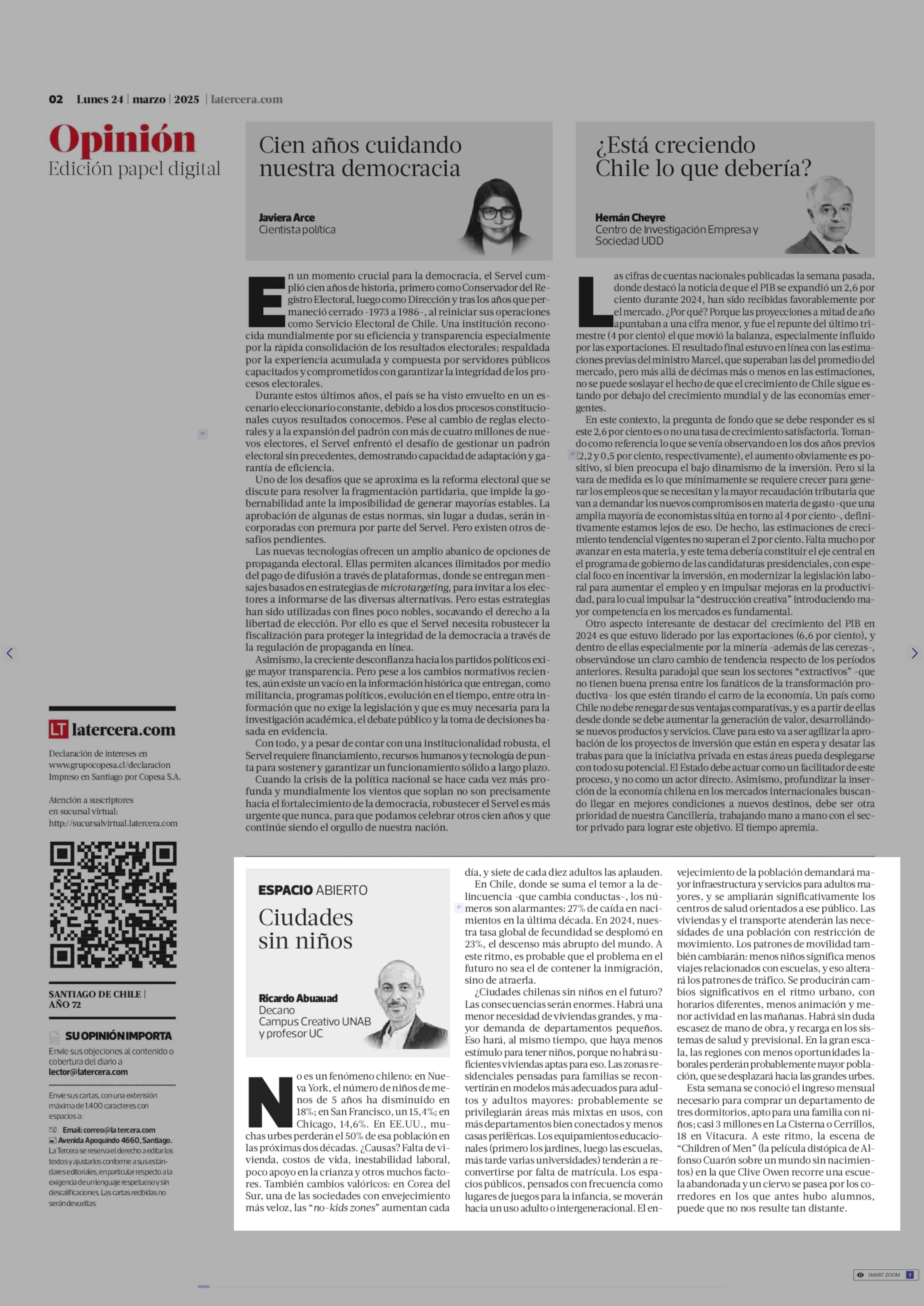 COLUMNAS DE OPINIÓN: ¿Está creciendo Chile lo que debería? 24-03-2025 La Tercera |