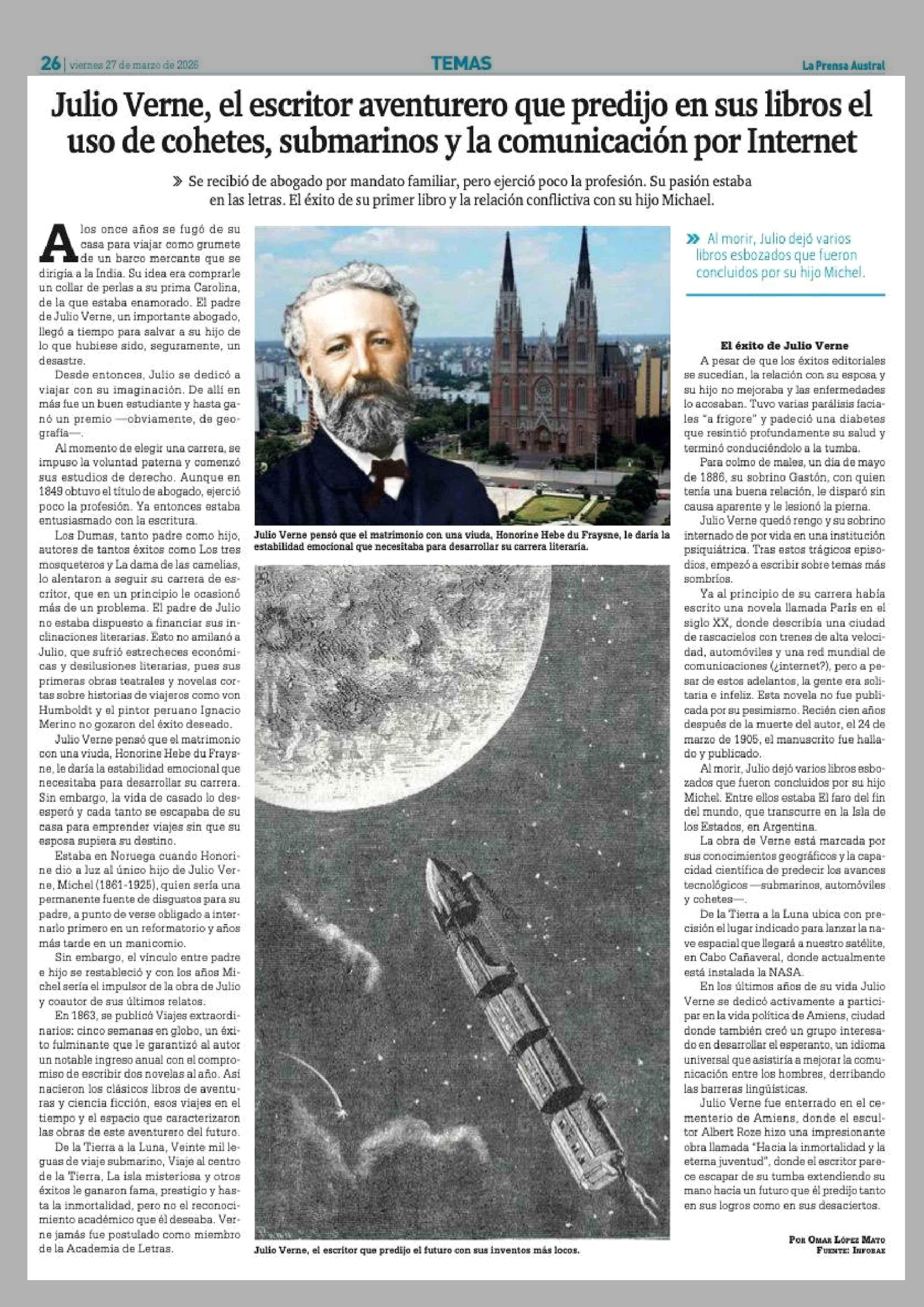 Título: Julio Verne, el escritor aventurero que predijo en sus libros el uso de cohetes, submarinos y la comunicación por Internet