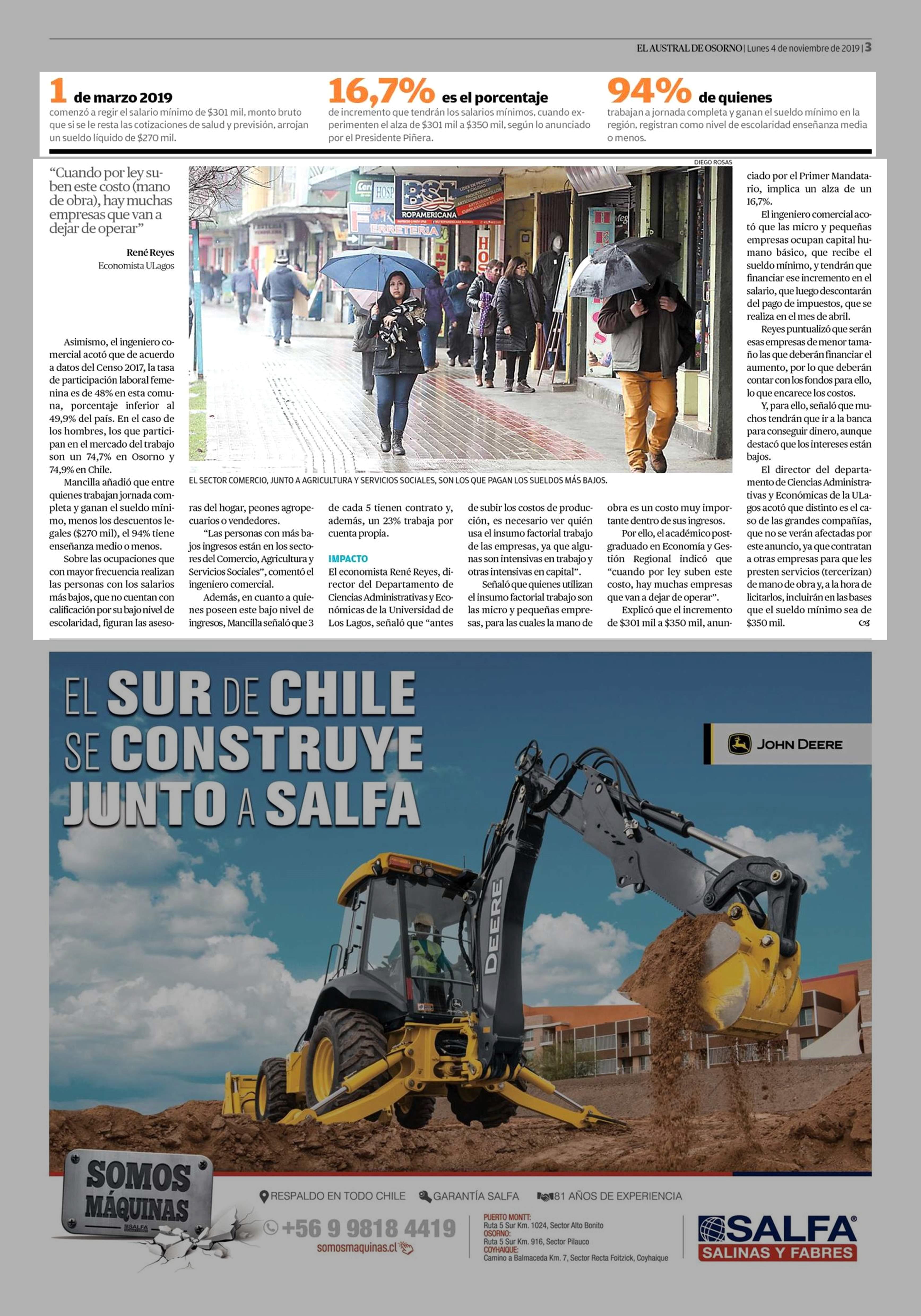 Tres de cada 10 trabajadores de jornada completa gana el mínimo 04-11-2019 El Austral de Osorno |