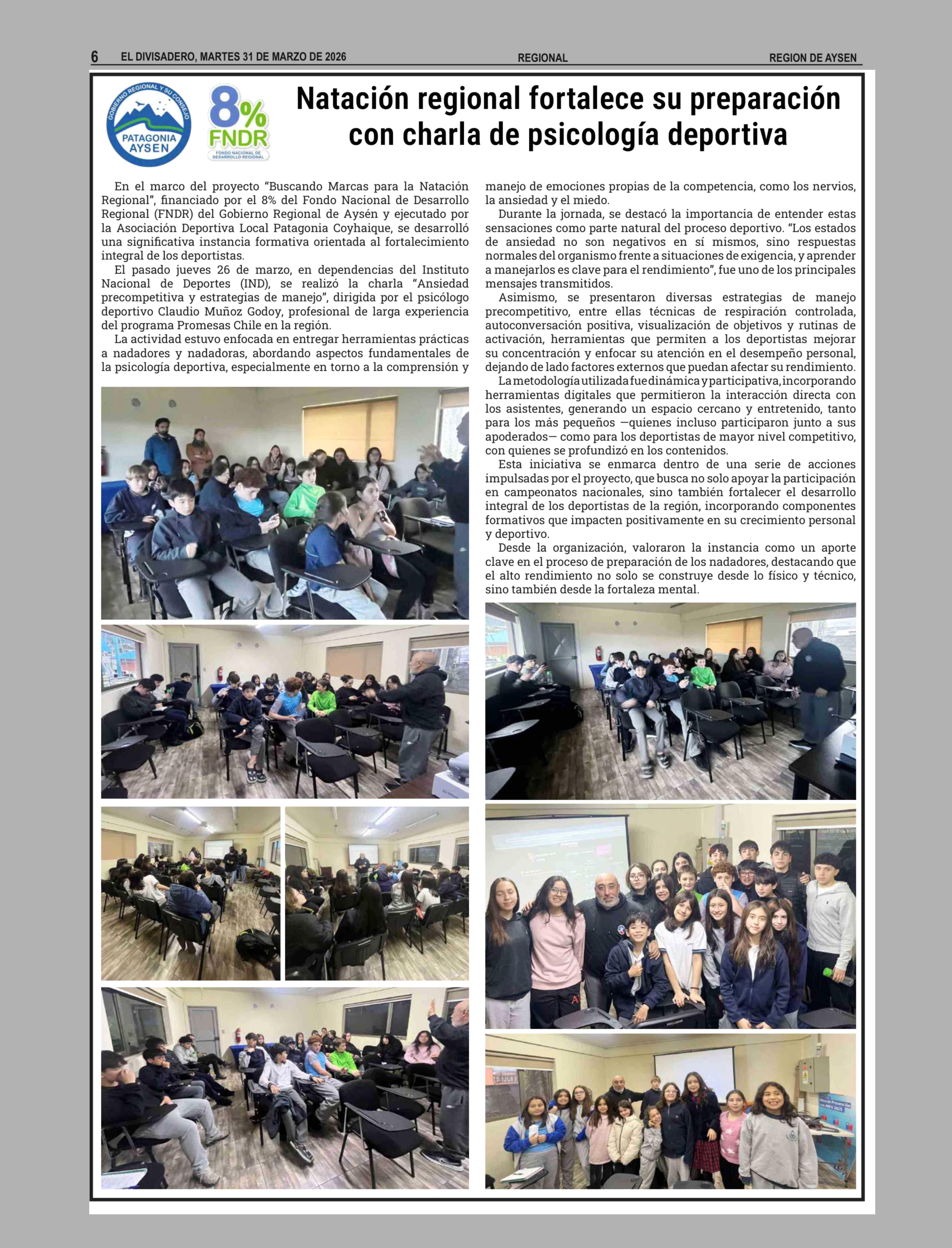 Título: Natación regional fortalece su preparación con charla de psicología deportiva