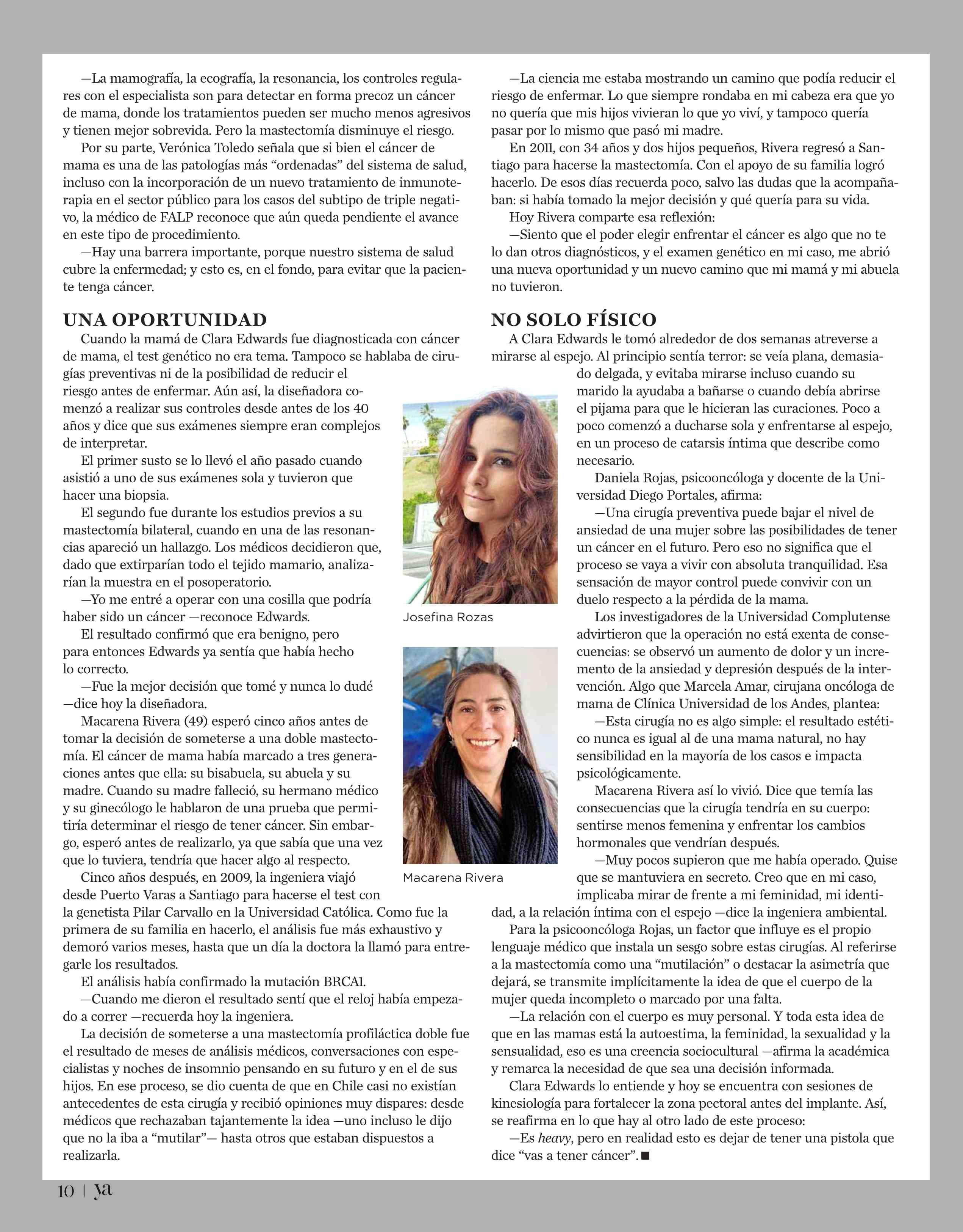 | Título: | Clara Edwards y su decisión de adelantarse al cáncer |