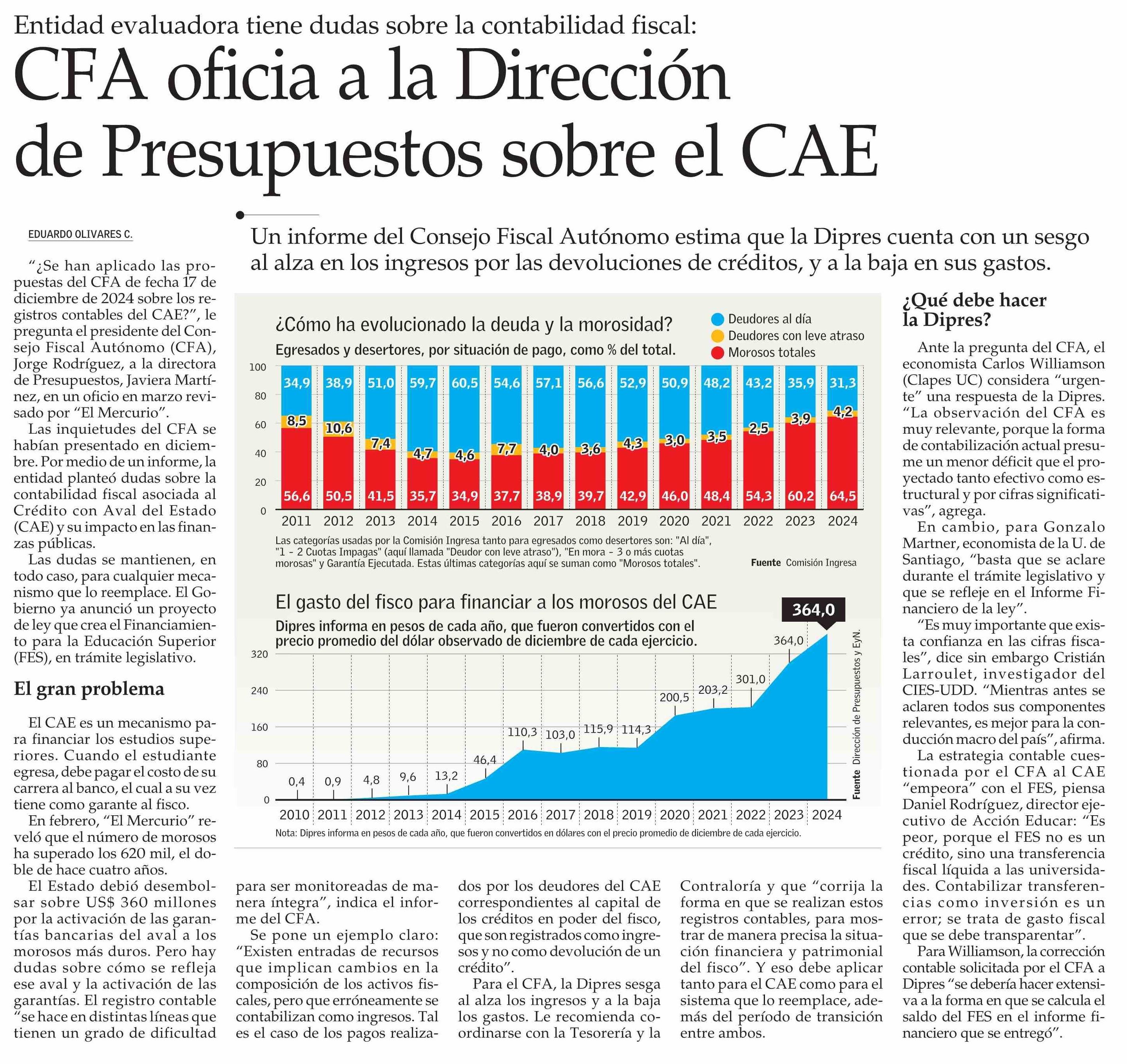 CFA oficia a la Dirección de Presupuestos sobre el CAE 13-03-2025 El Mercurio |