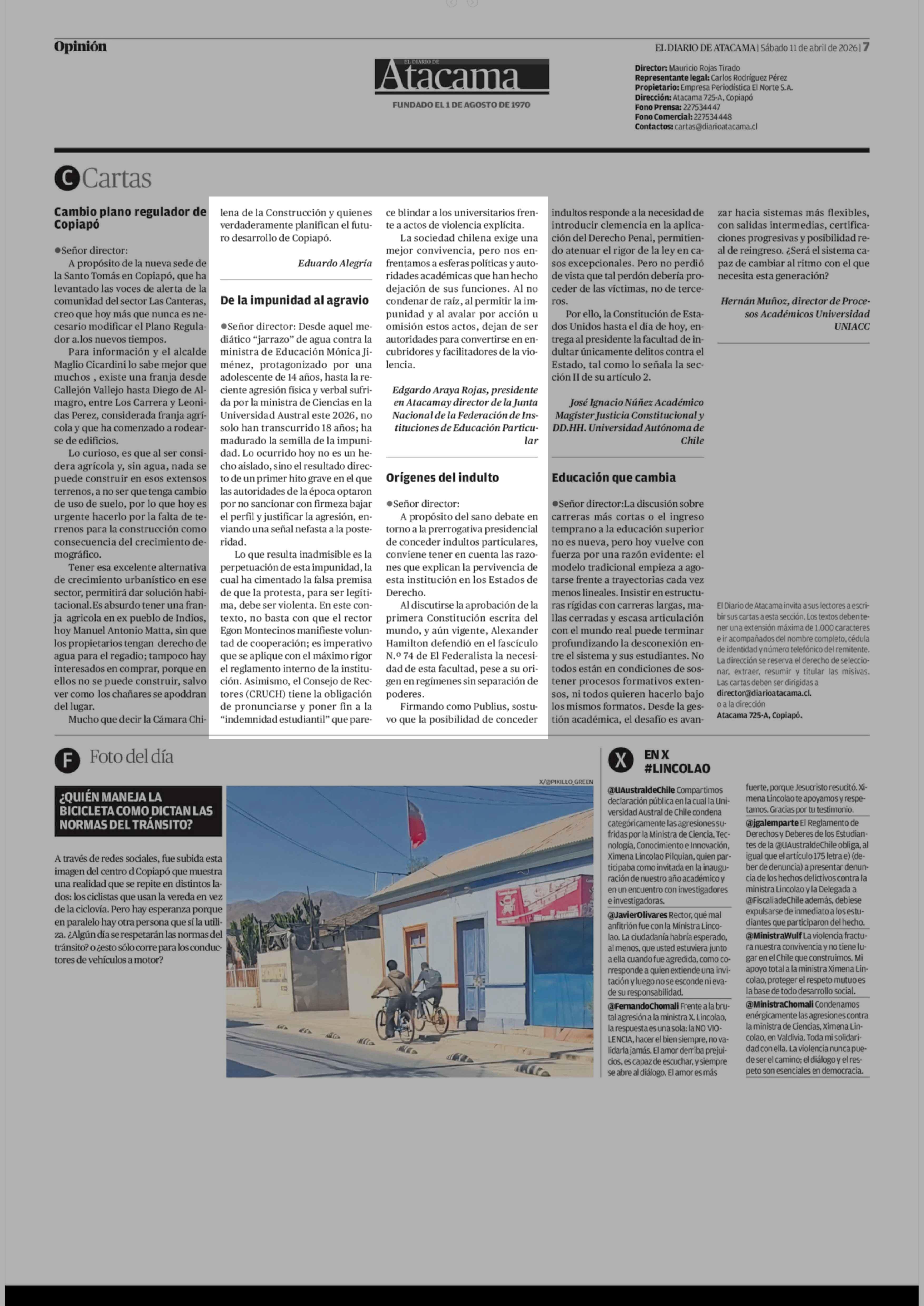 Fuente: El Diario de Atacama (El Diario de Atacama) Página(s): 7