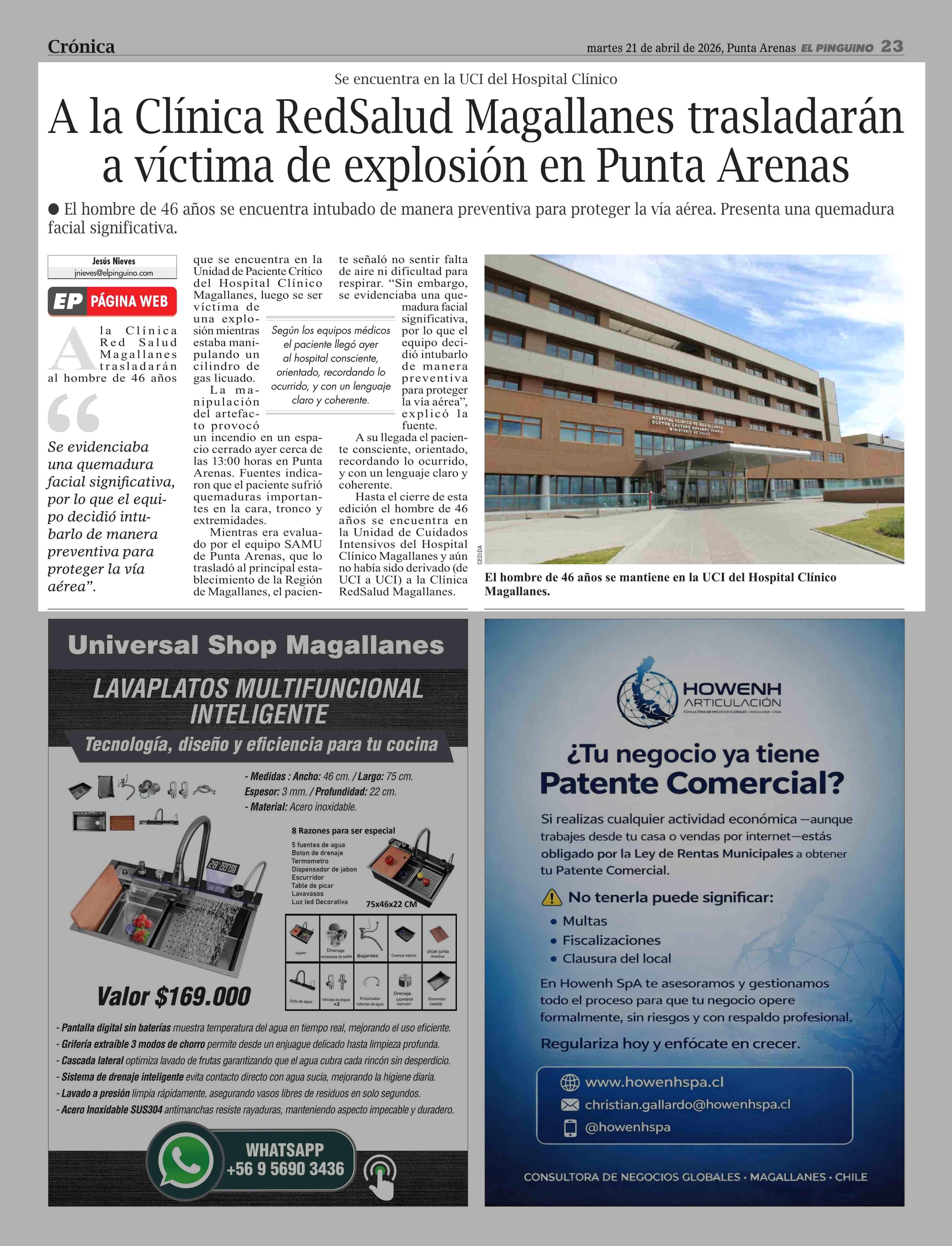 Título: A la Clínica RedSalud Magallanes trasladarán a víctima de explosión en Punta Arenas