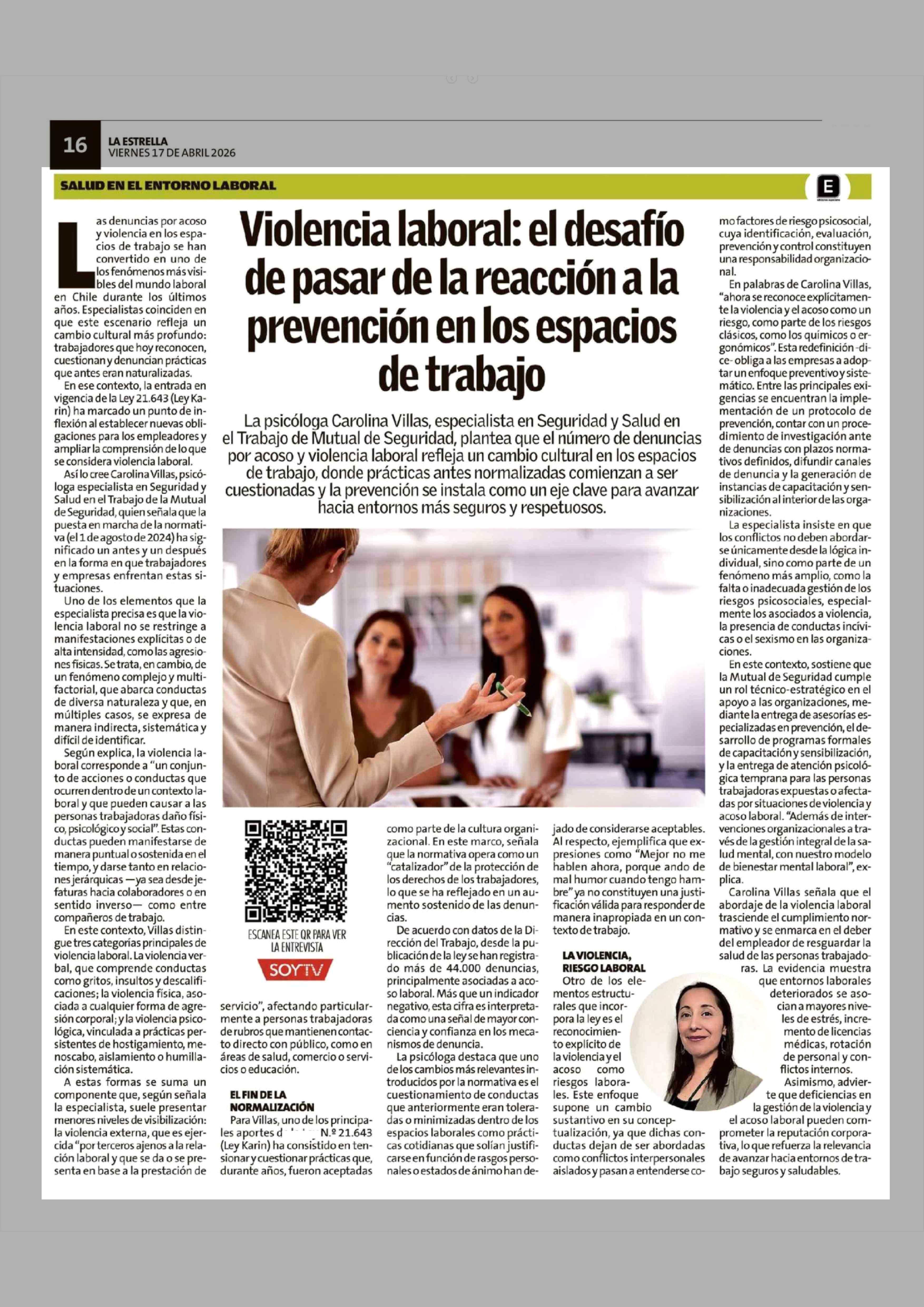 Título: Violencia laboral: el desafío de pasar de la reacción a la prevención en los espacios de trabajo