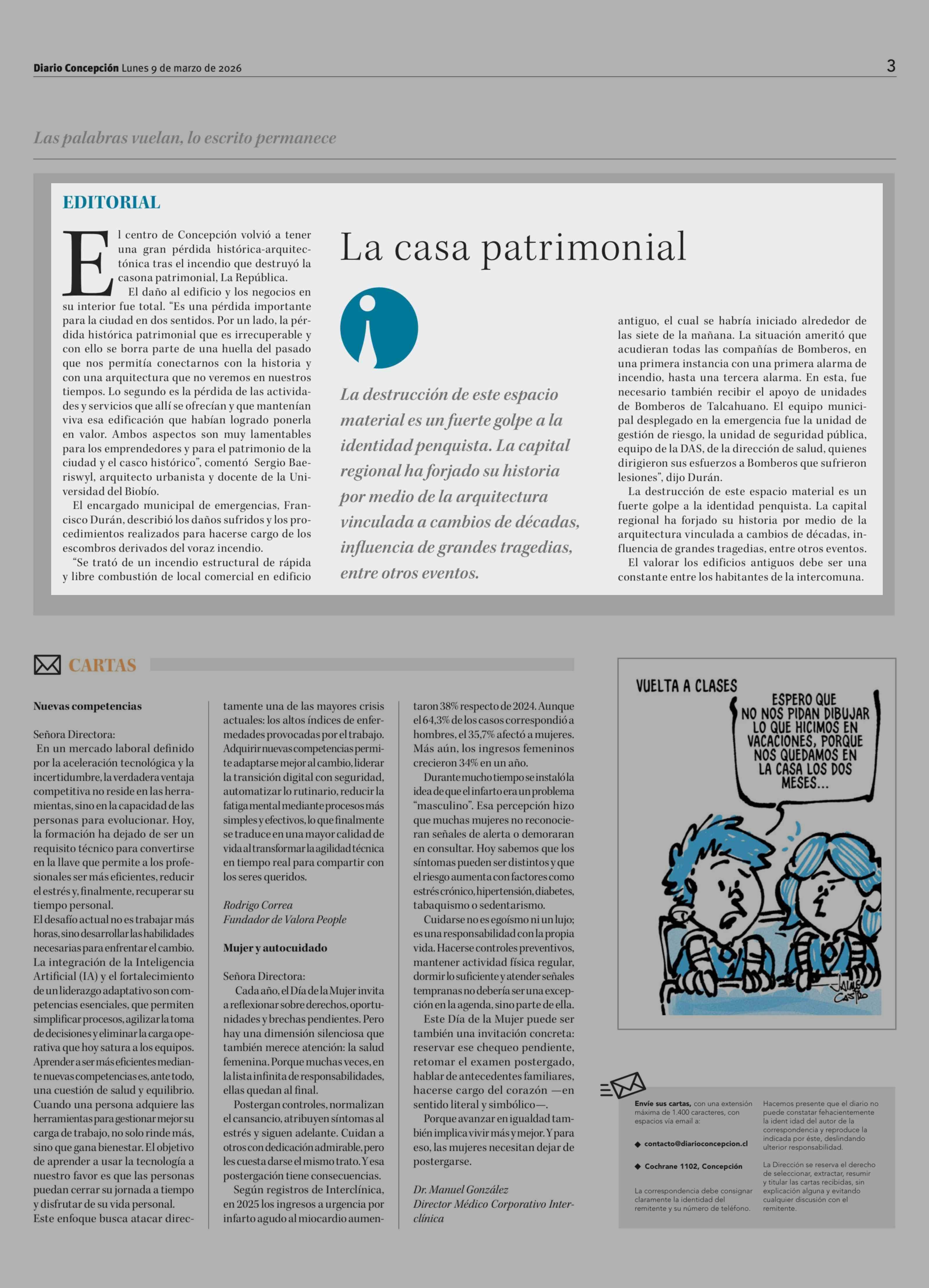 Editorial: La casa patrimonial 09-03-2026 Diario Concepción |