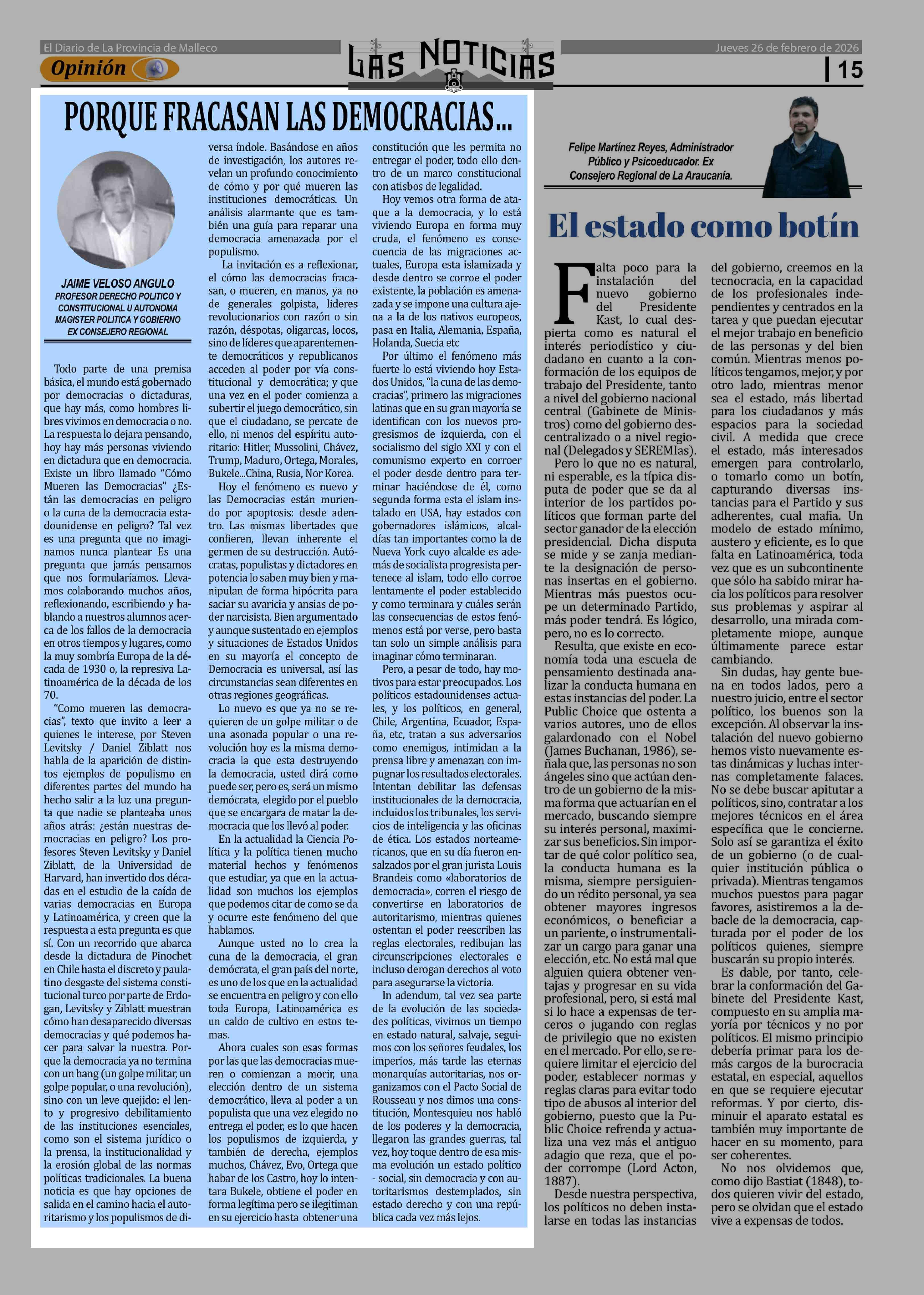 Fecha: 26-02-2026 Sector: Columnas de Opinión Región: Región de la Araucanía