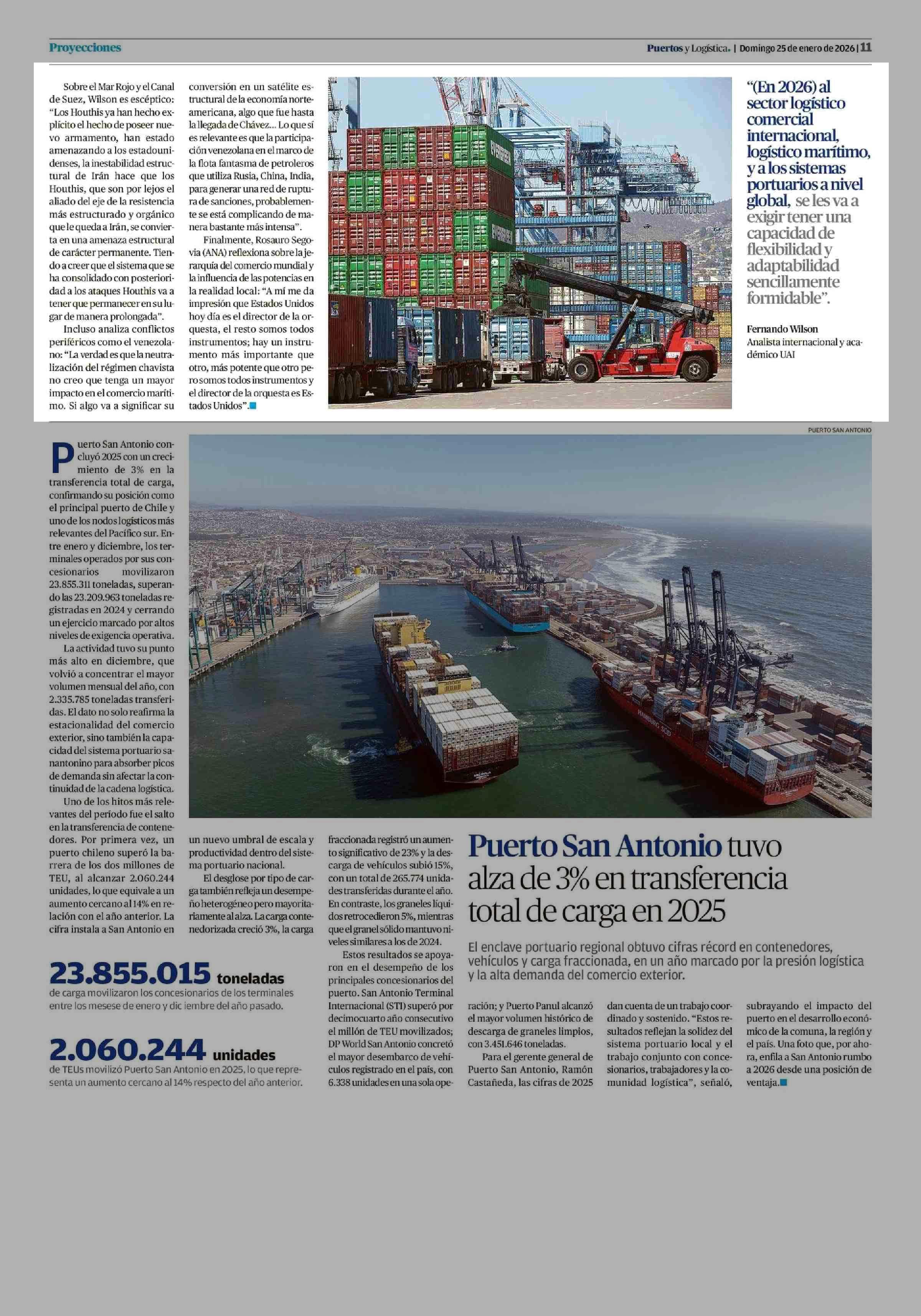 Valparaíso ante la encrucijada logística 2026: eficiencia bajo presión global 25-01-2026 El Mercurio de Valparaíso |