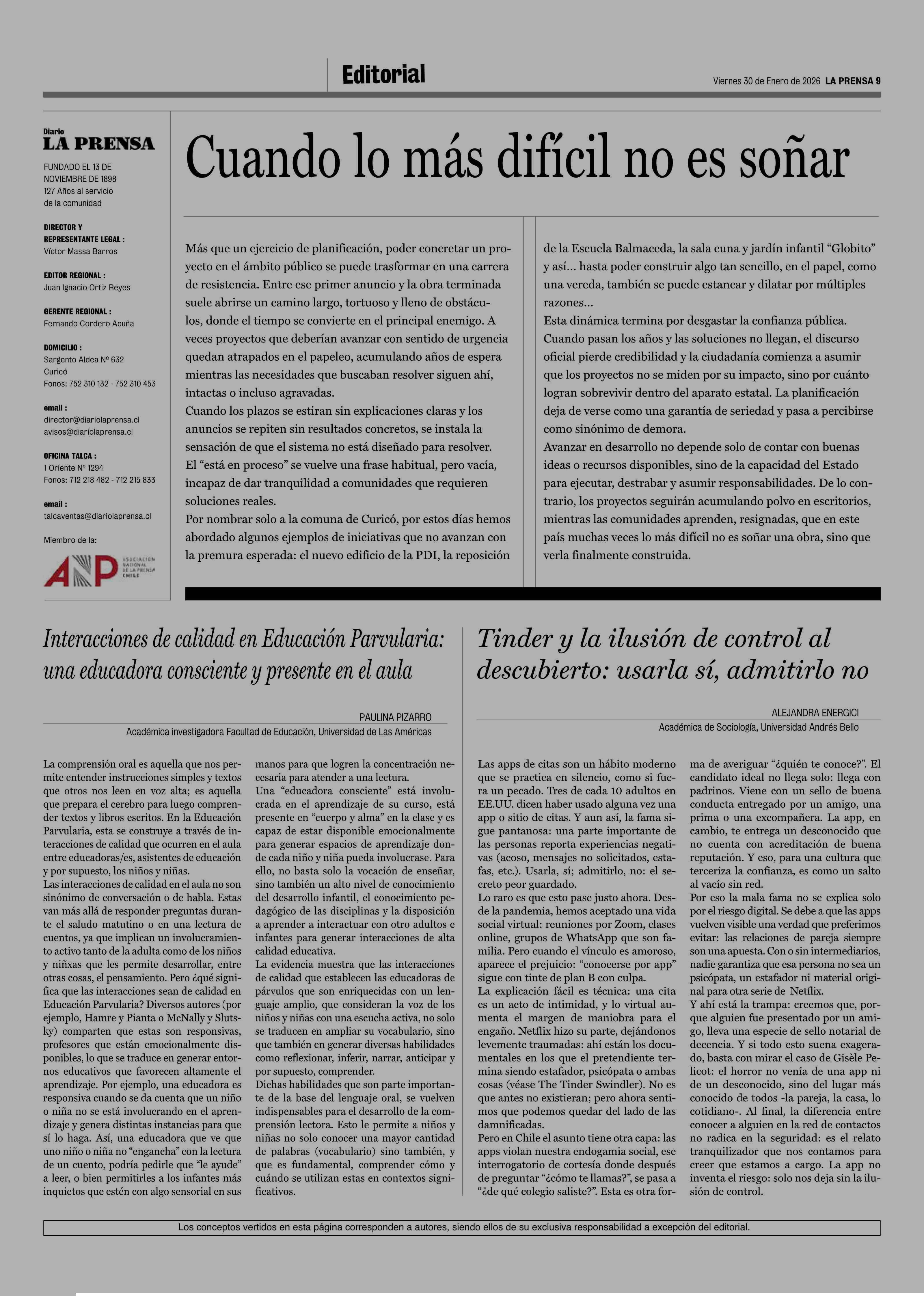 30-01-2026 La Prensa de Curicó