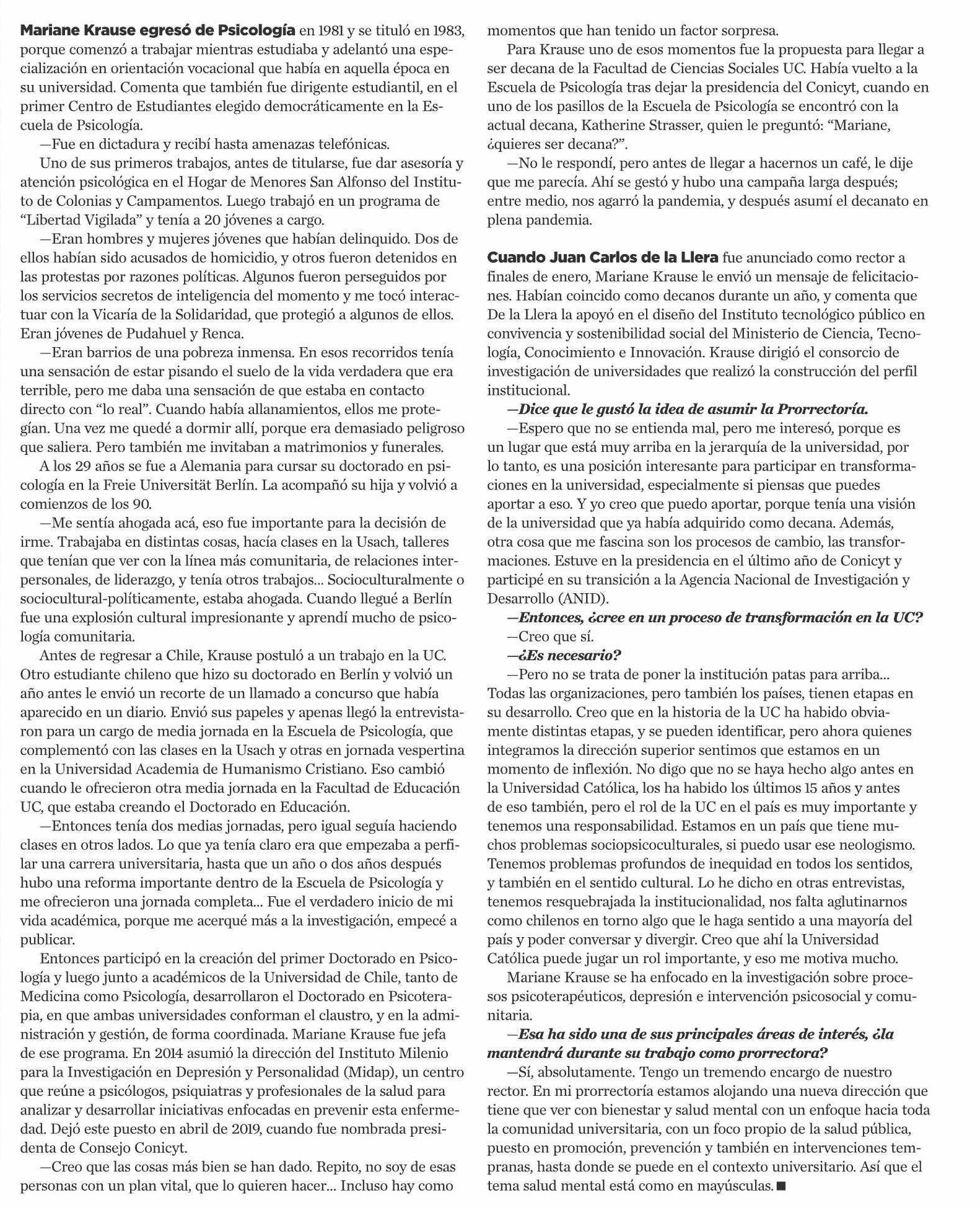 Mariane Krause “Voy más allá de lo esperado y tomo todos los desafios” 20-05-2025 El Mercurio |