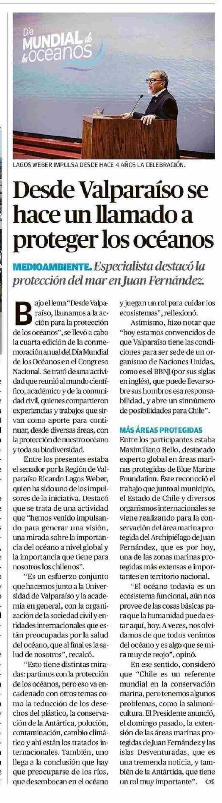 Desde Valparaíso se proteger los océanos hace un llamado a 08-06-2025 El Mercurio de Valparaíso |