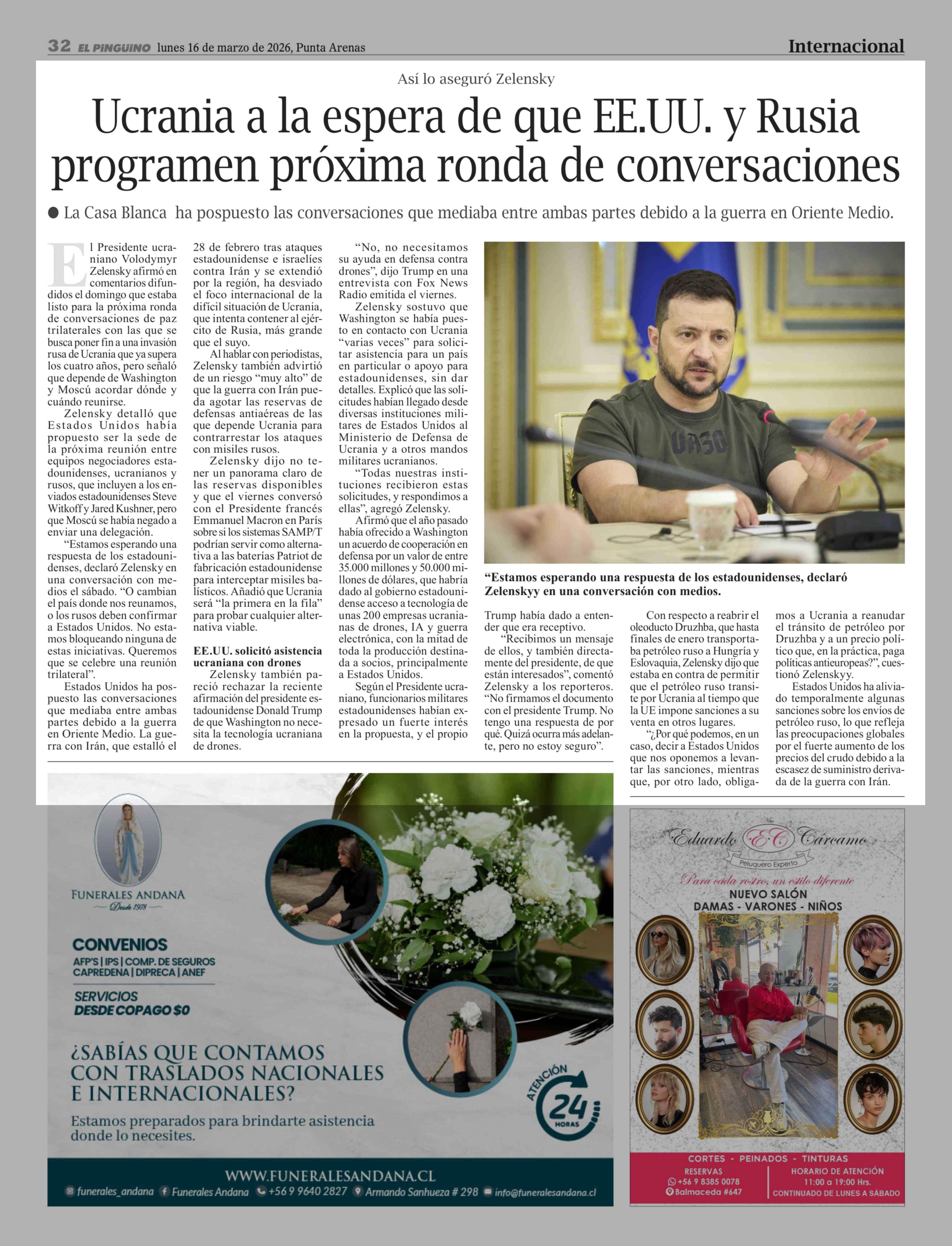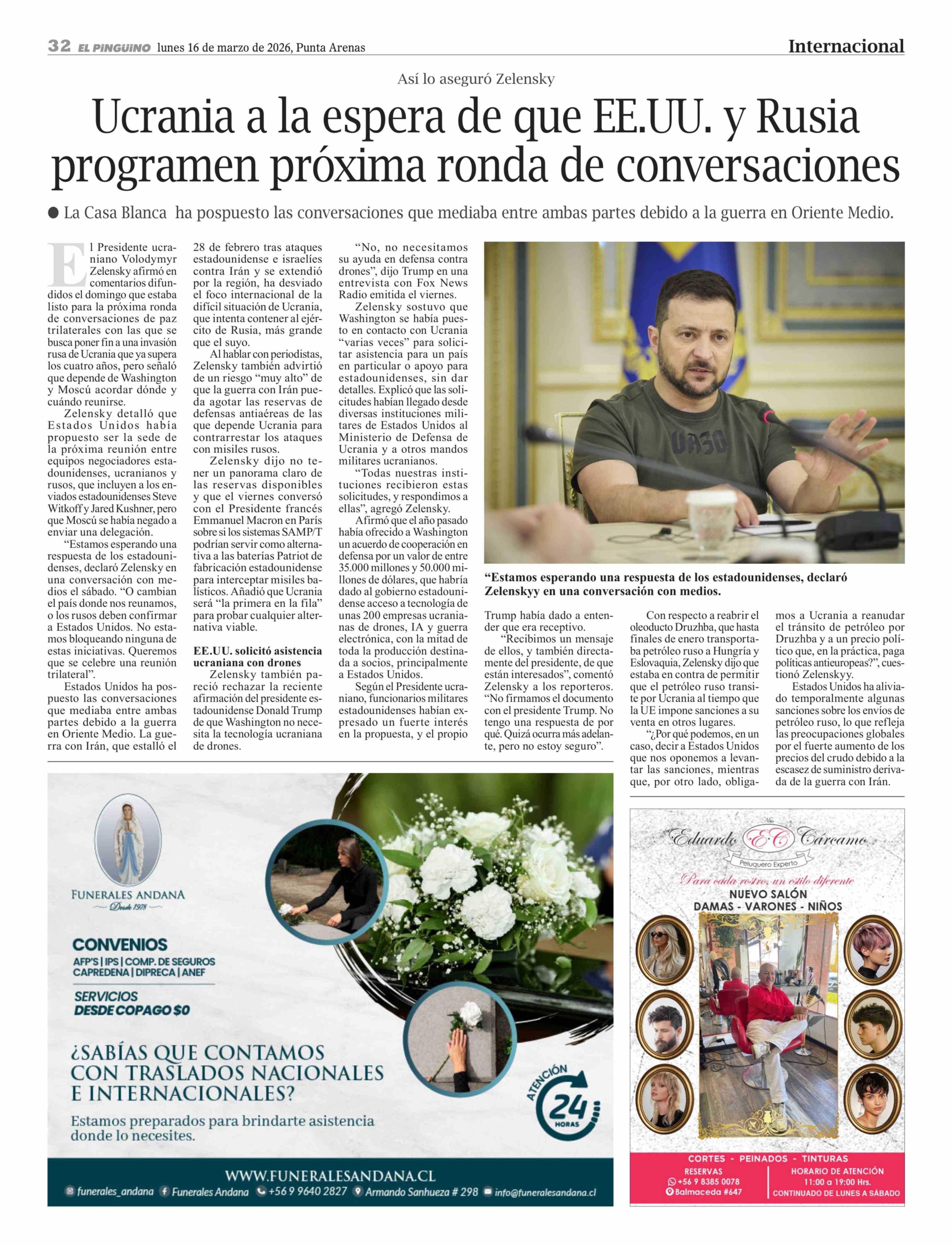 Ucrania a la espera de que EE.UU. y Rusia programen próxima ronda de conversaciones 16-03-2026 El Pingüino |