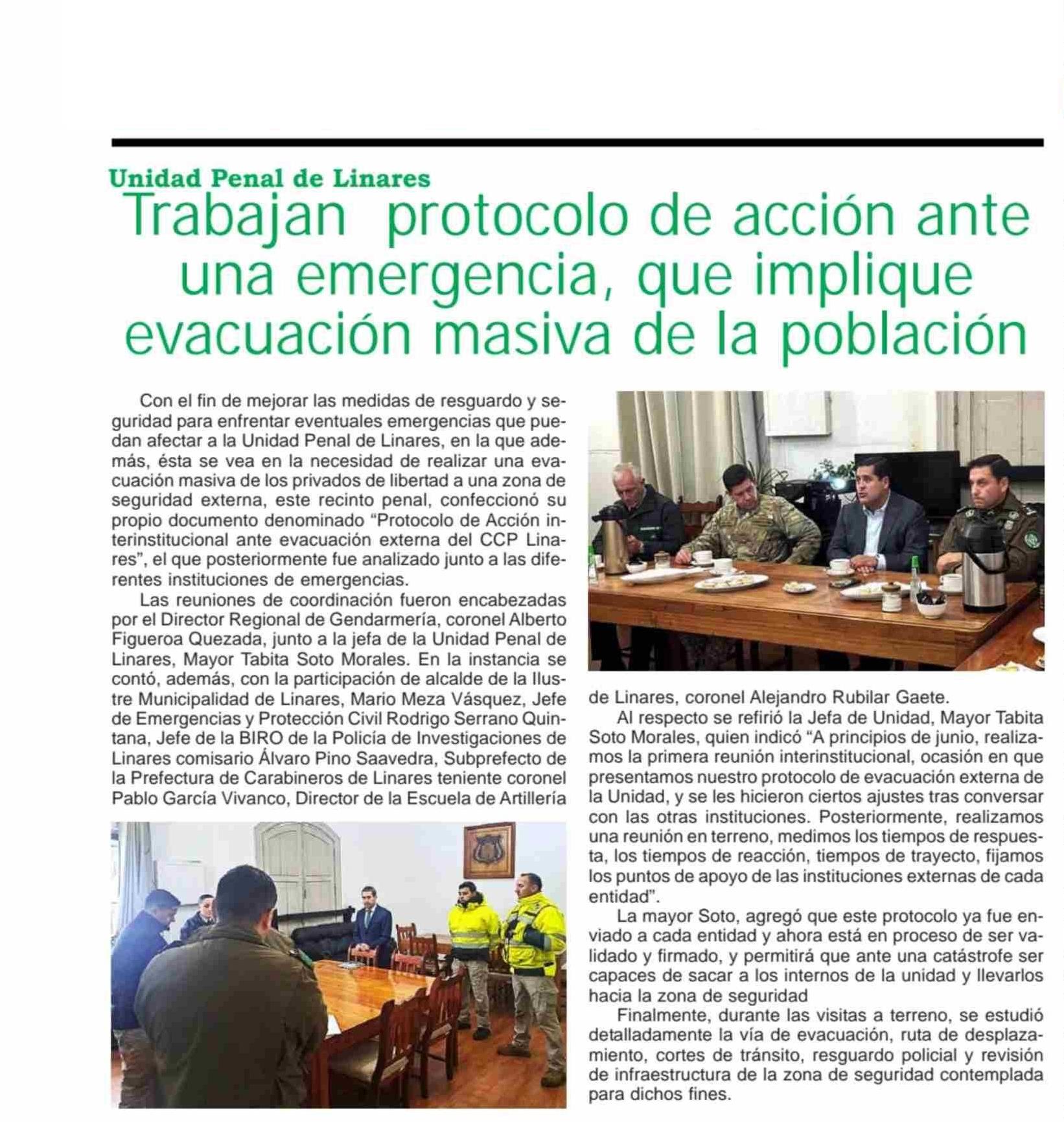 Trabajan protocolo de acción ante una emergencia, que implique evacuación masiva de la población 21-06-2025 Maule Hoy |