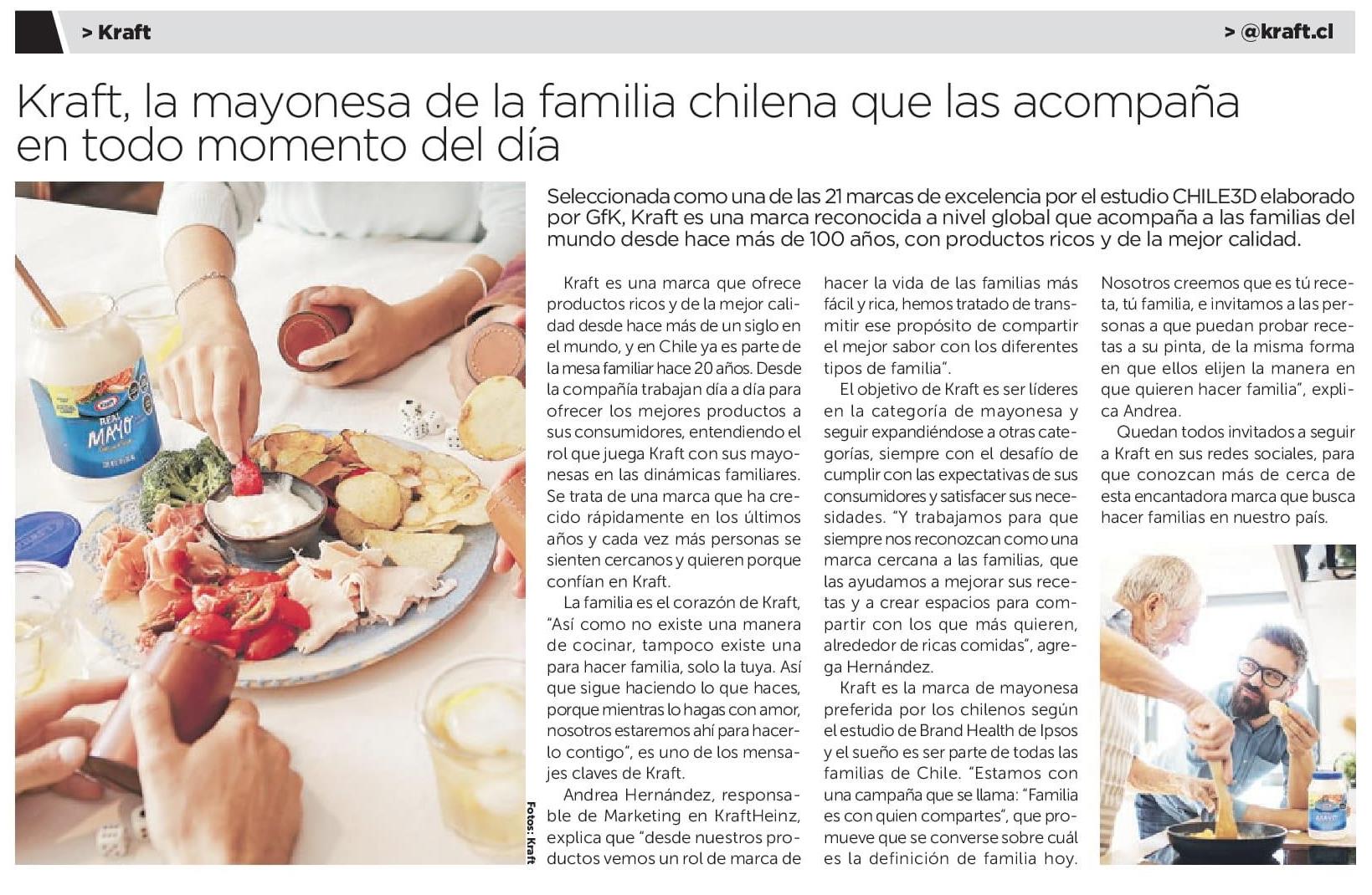 Kraft, la mayonesa de la familia chilena que las acompaña en todo momento del día 15-04-2023 La Tercera |