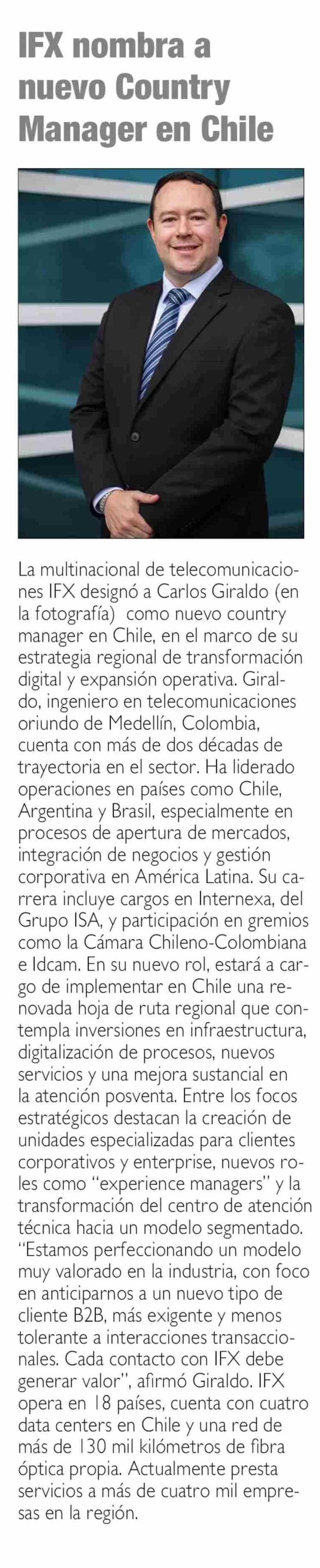 IFX nombra a nuevo Country Manager en Chile 20-06-2025 Las Últimas Noticias |