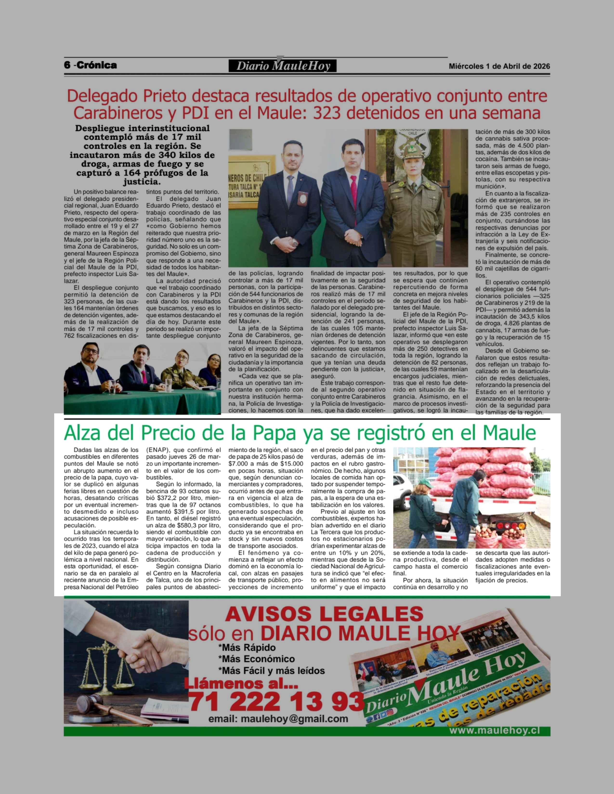 | Fuente: | Maule Hoy (Maule Hoy) | Página(s): | 6 |