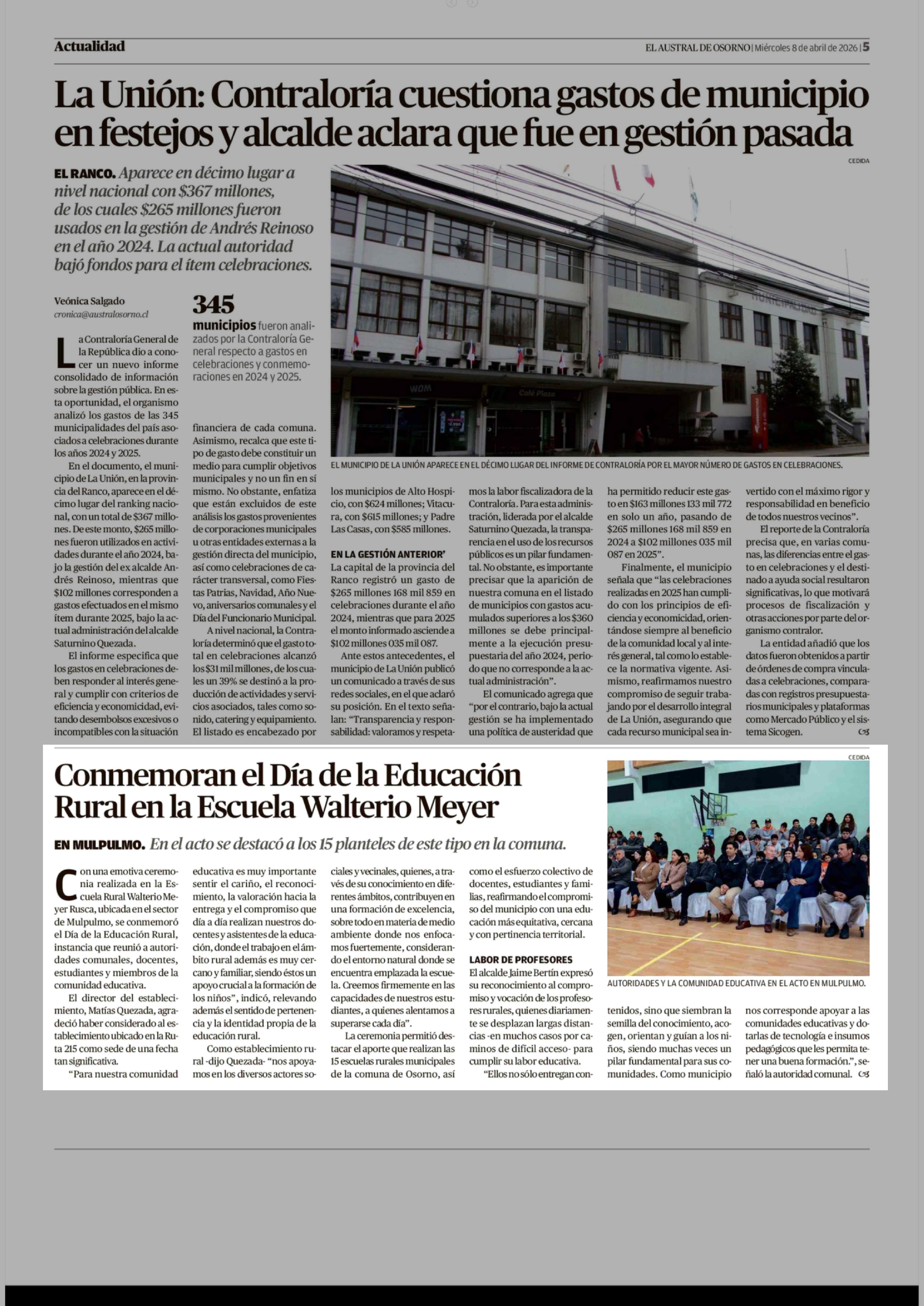 Conmemoran el Día de la Educación Rural en la Escuela Walterio Meyer 08-04-2026 El Austral de Osorno |