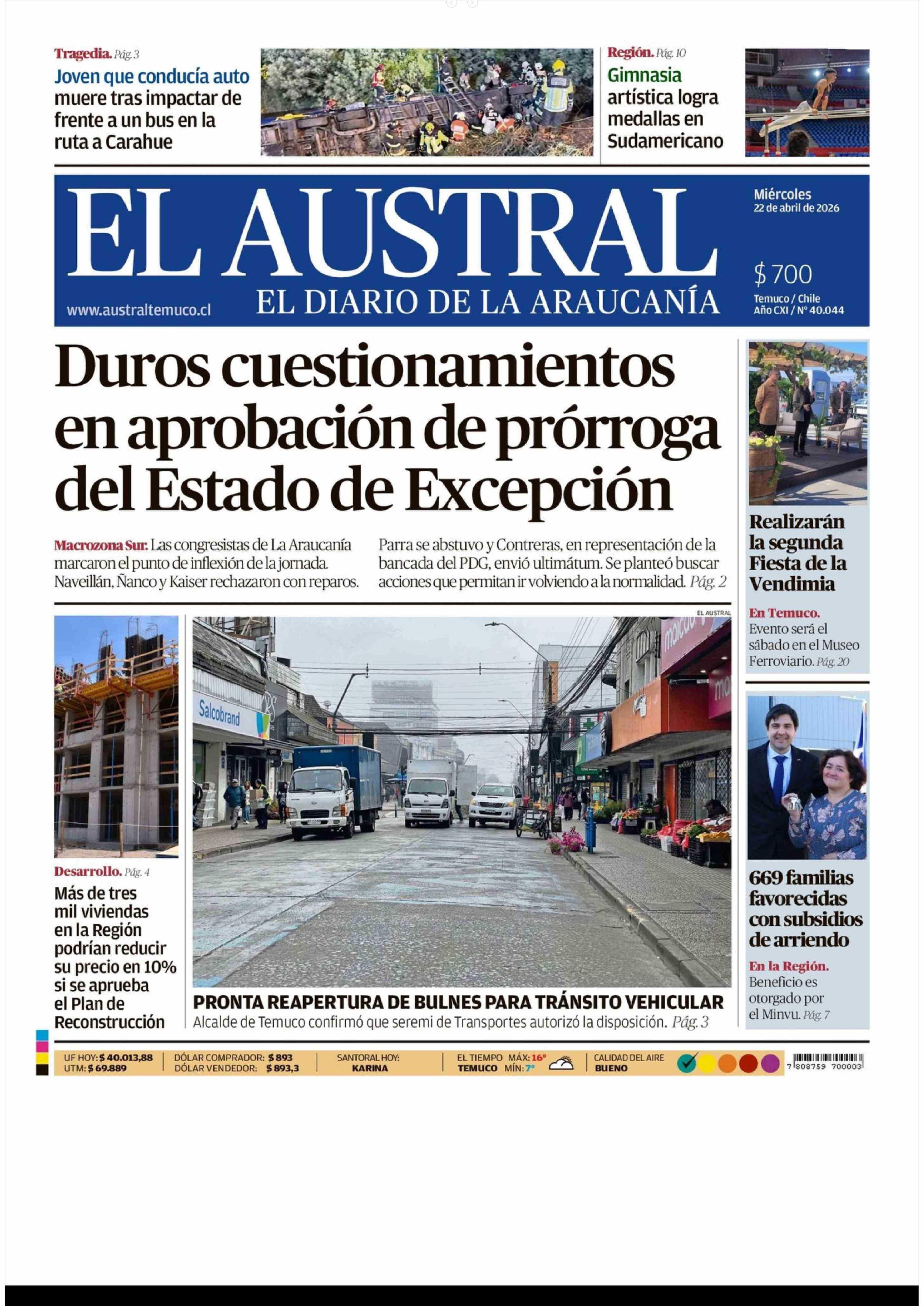 | Fecha: | 22-04-2026 | Sector: | Portada | Región: | Región de la Araucanía |