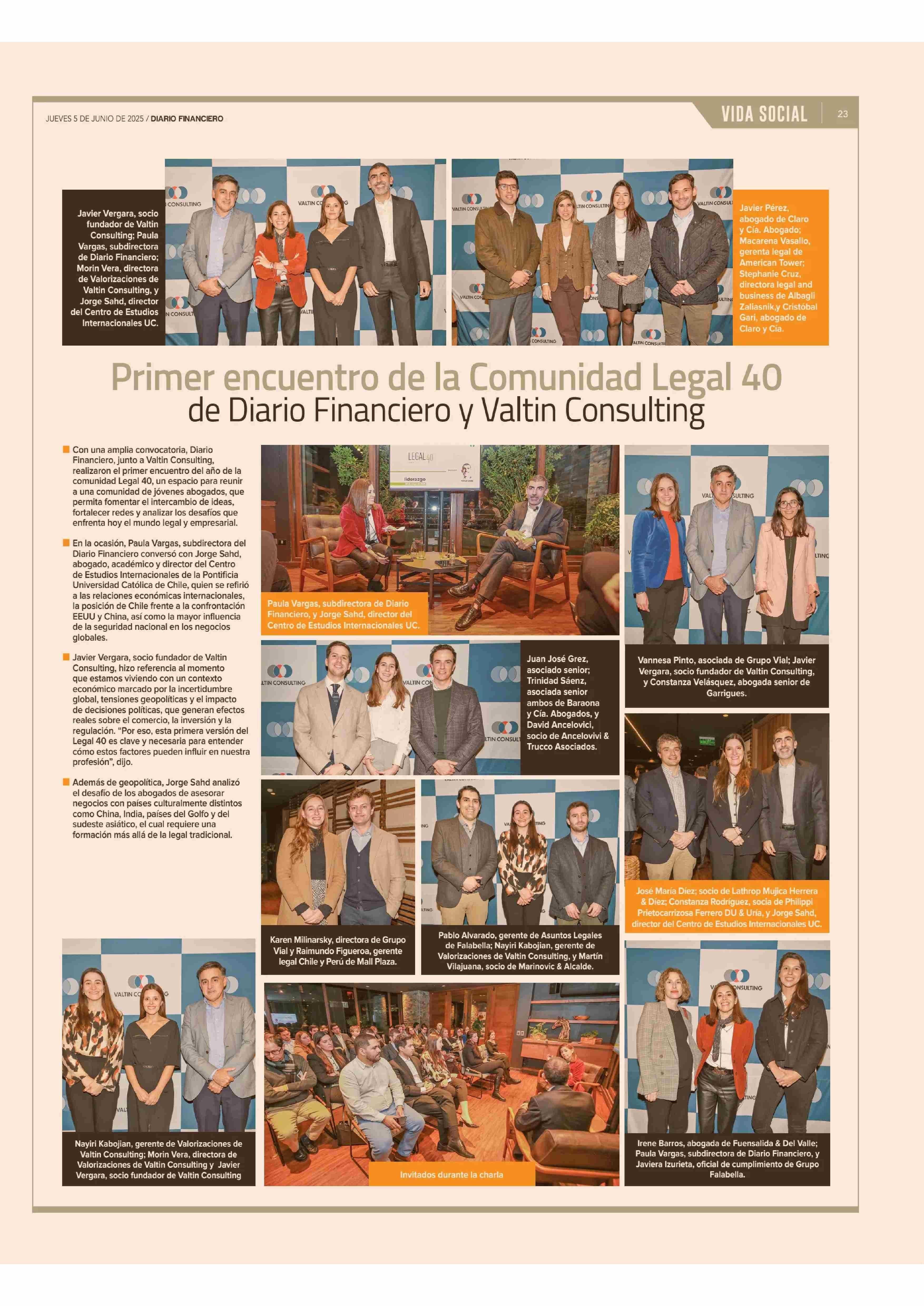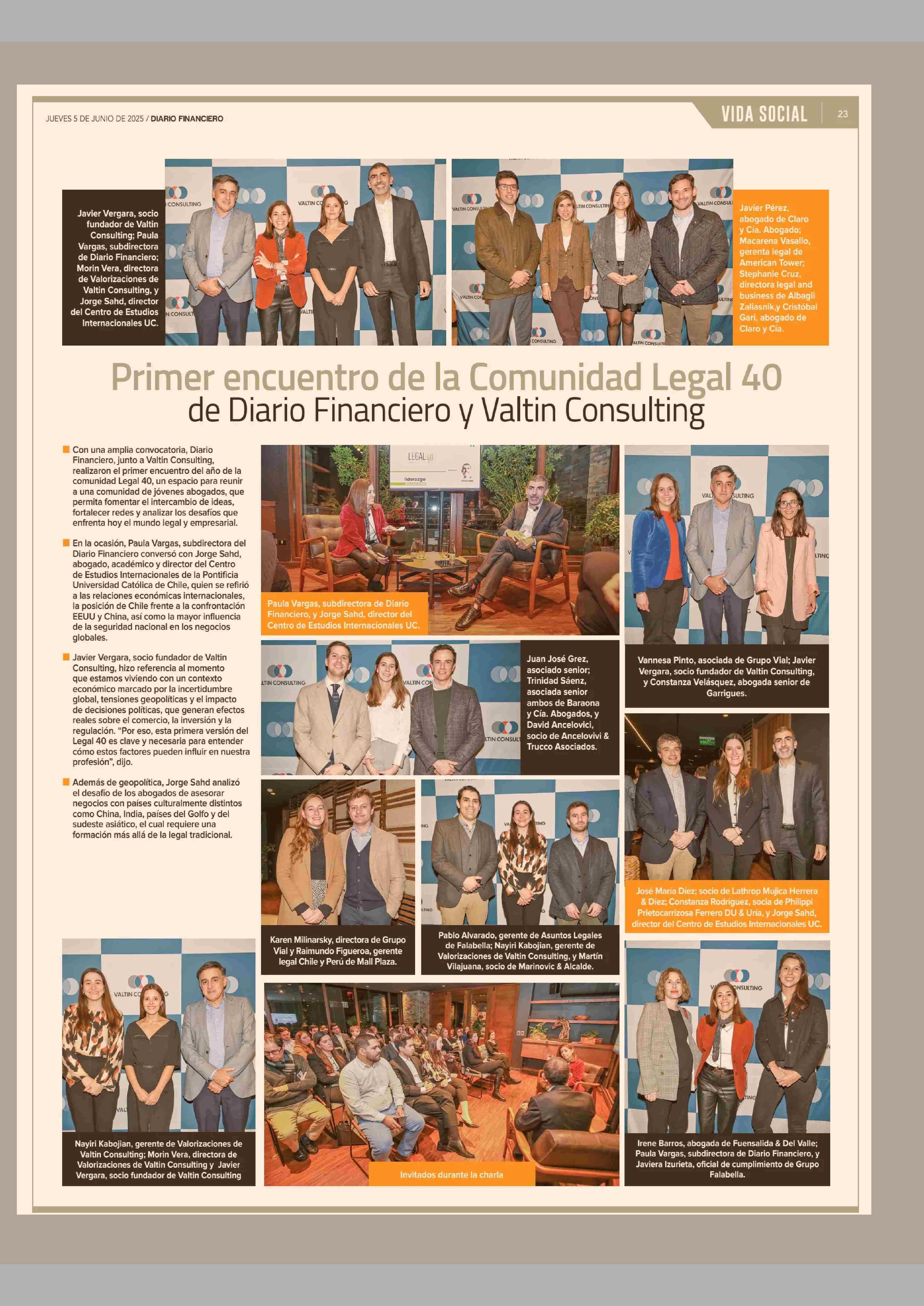 Primer encuentro de la Comunidad Legal 40 de Diario Financiero y Valtin Consulting 05-06-2025 Diario Financiero |