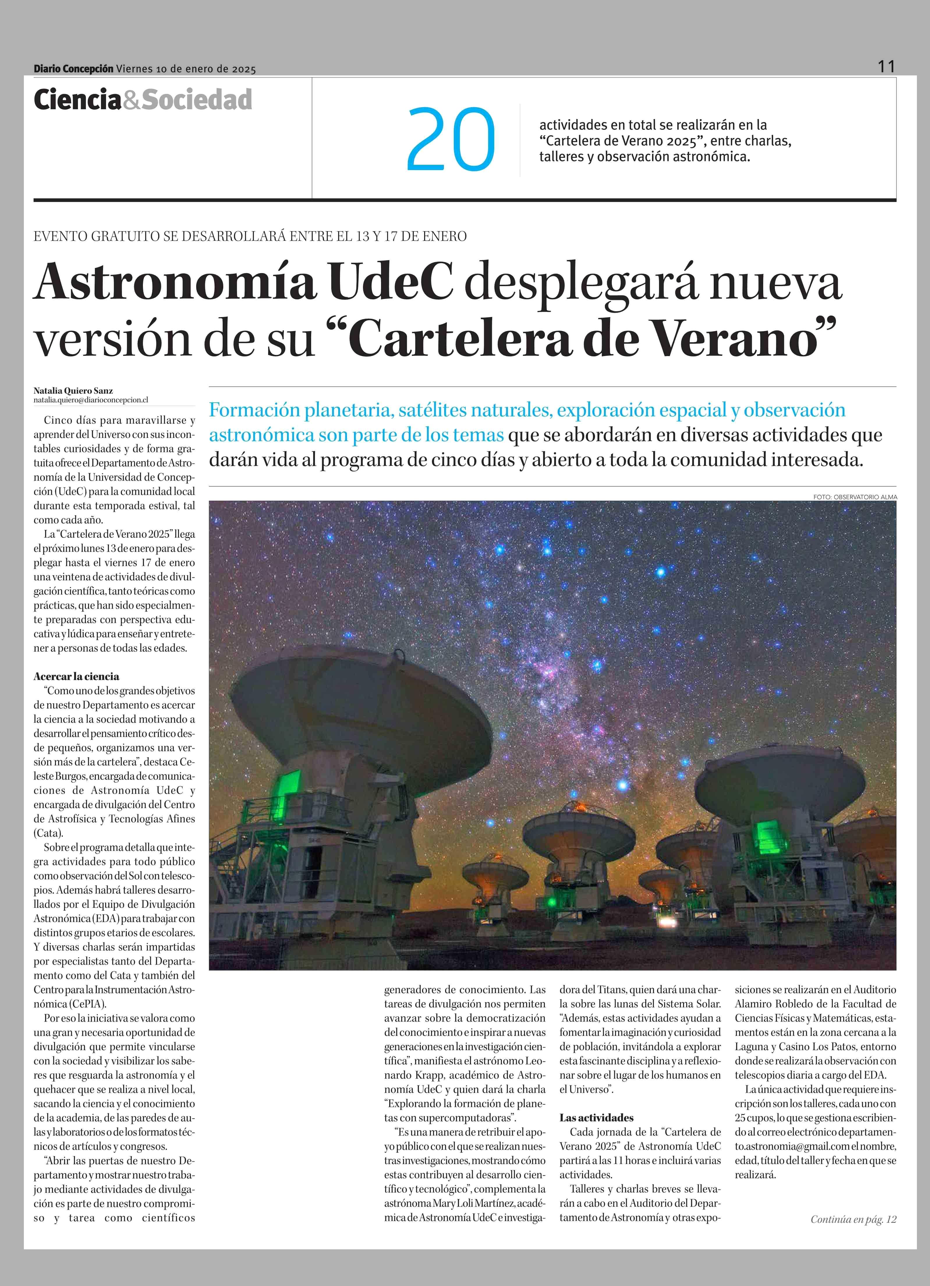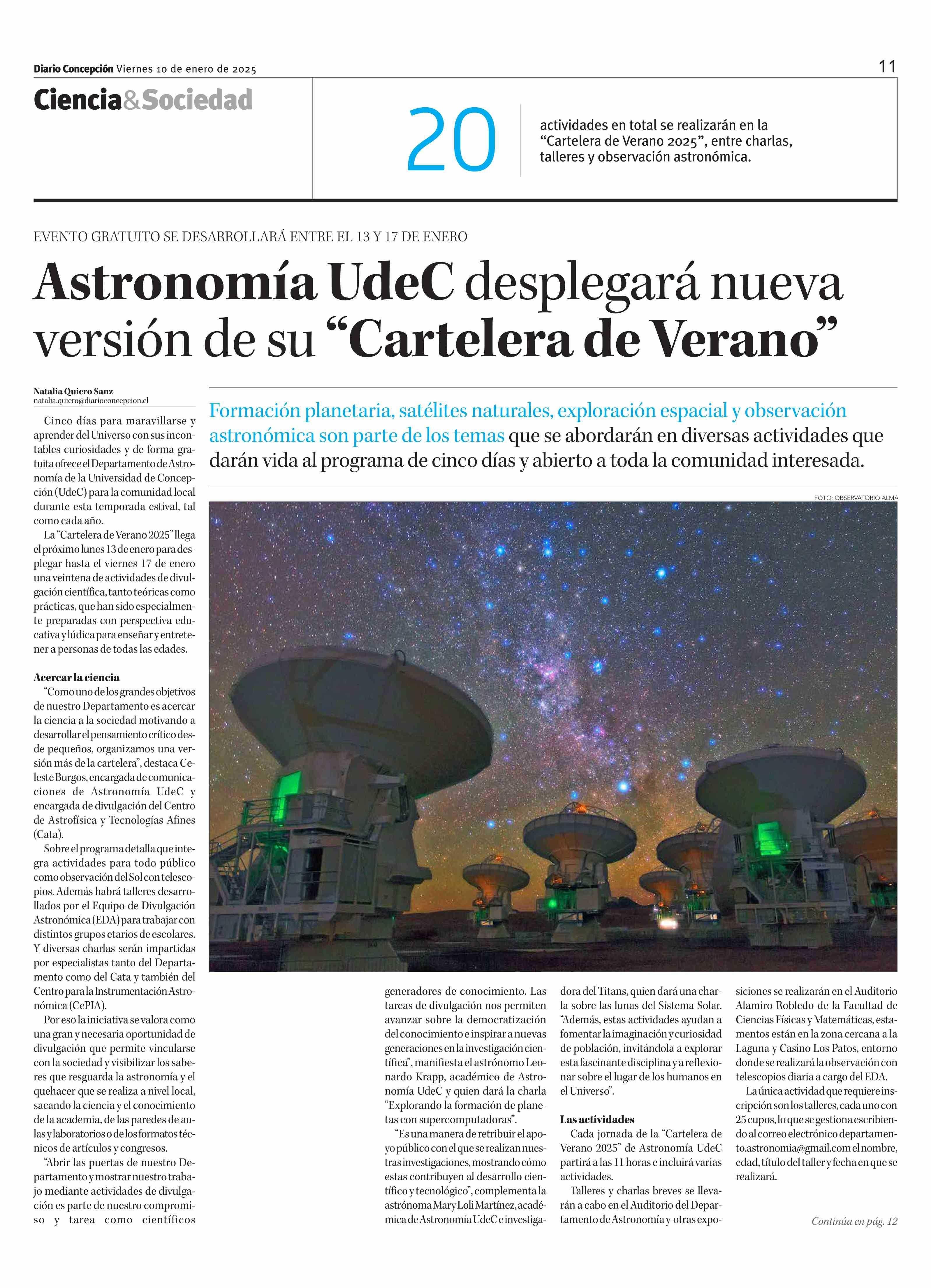 Título: Astronomía UdeC desplegará nueva versión de su “Cartelera de Verano”