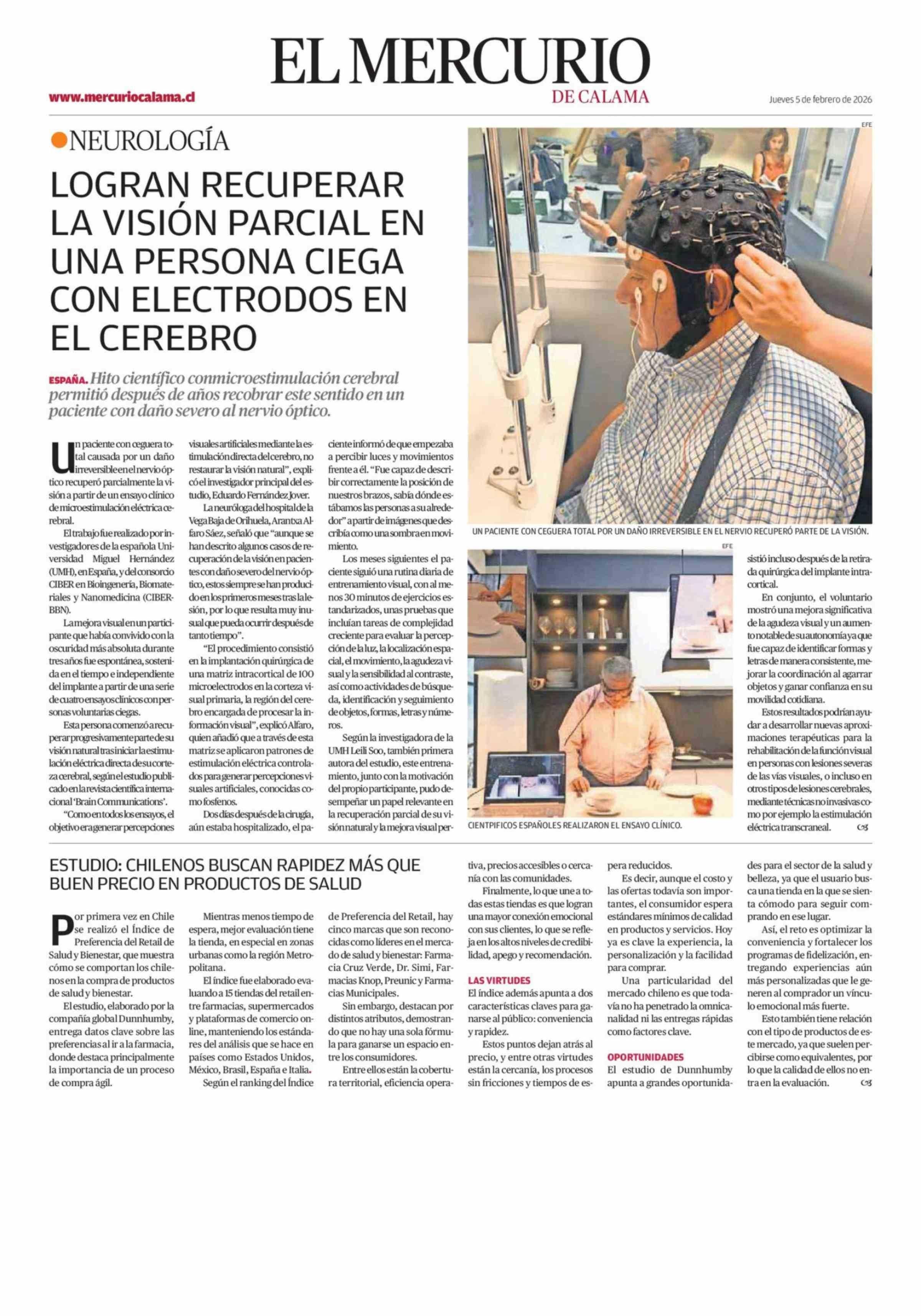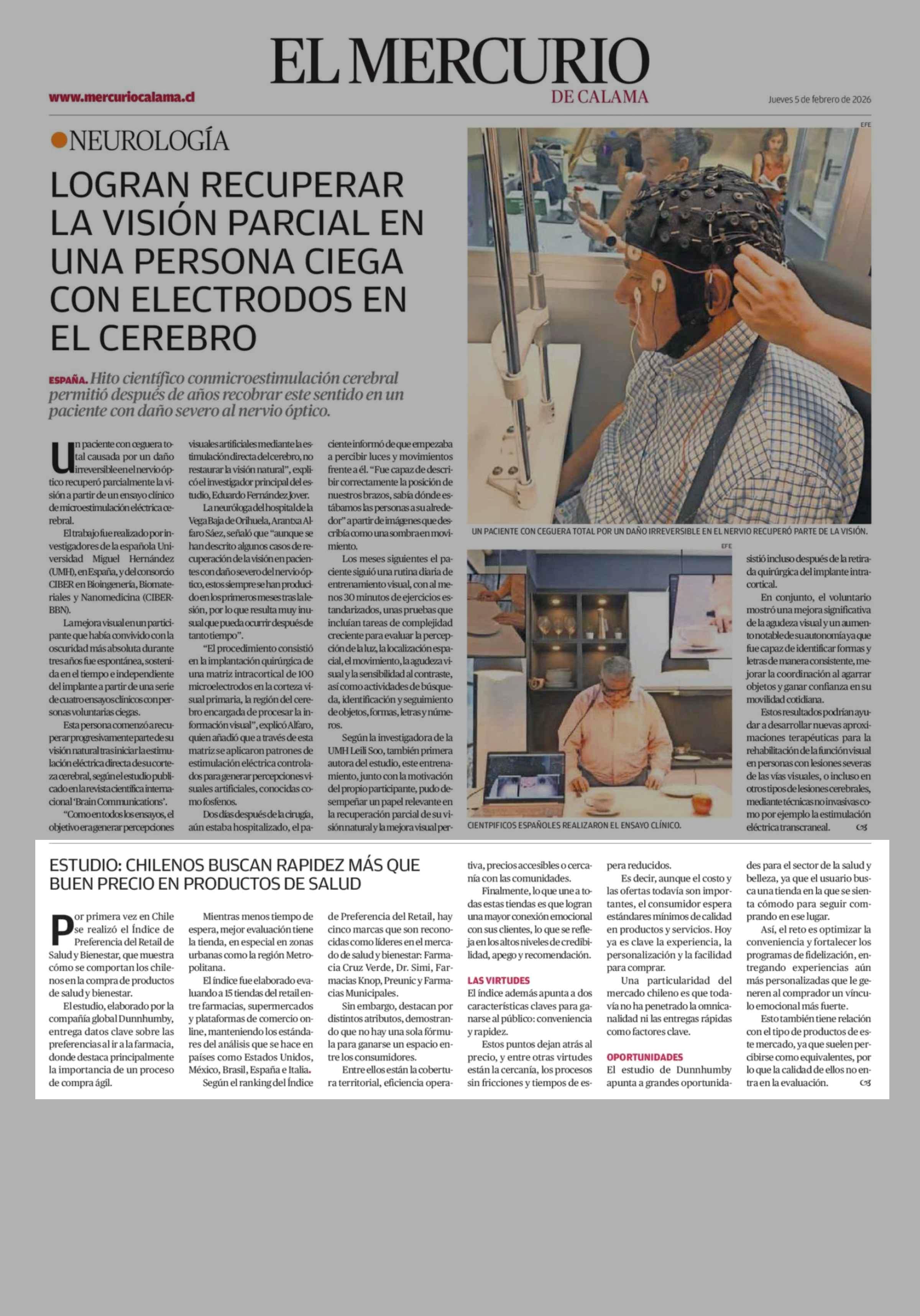 ESTUDIO: CHILENOS BUSCAN RAPIDEZ MÁS QUE BUEN PRECIO EN PRODUCTOS DE SALUD 05-02-2026 El Mercurio de Calama |