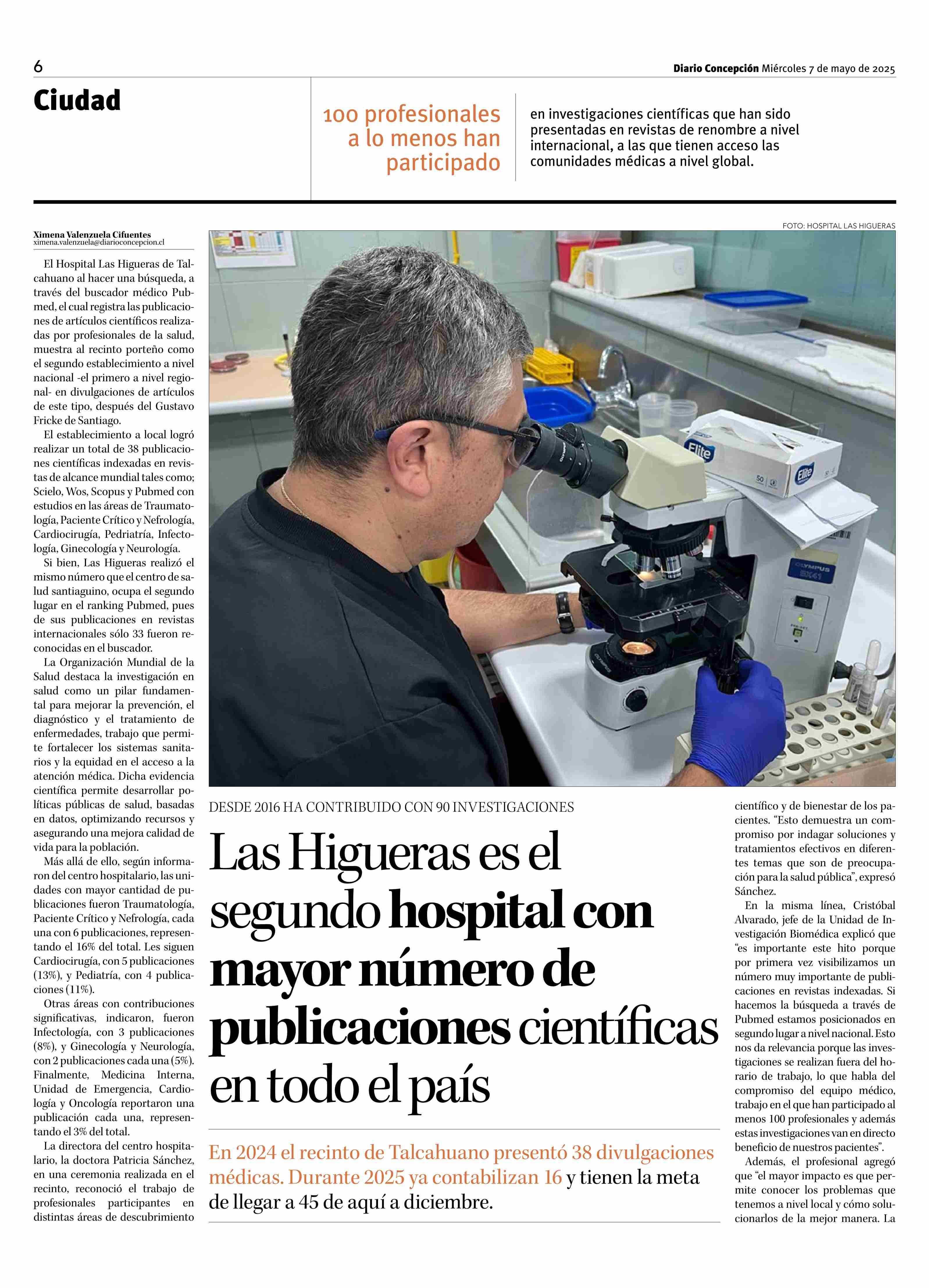 Título: Las Higueras es el segundo hospital con mayor número de publicaciones científicas en todo el país