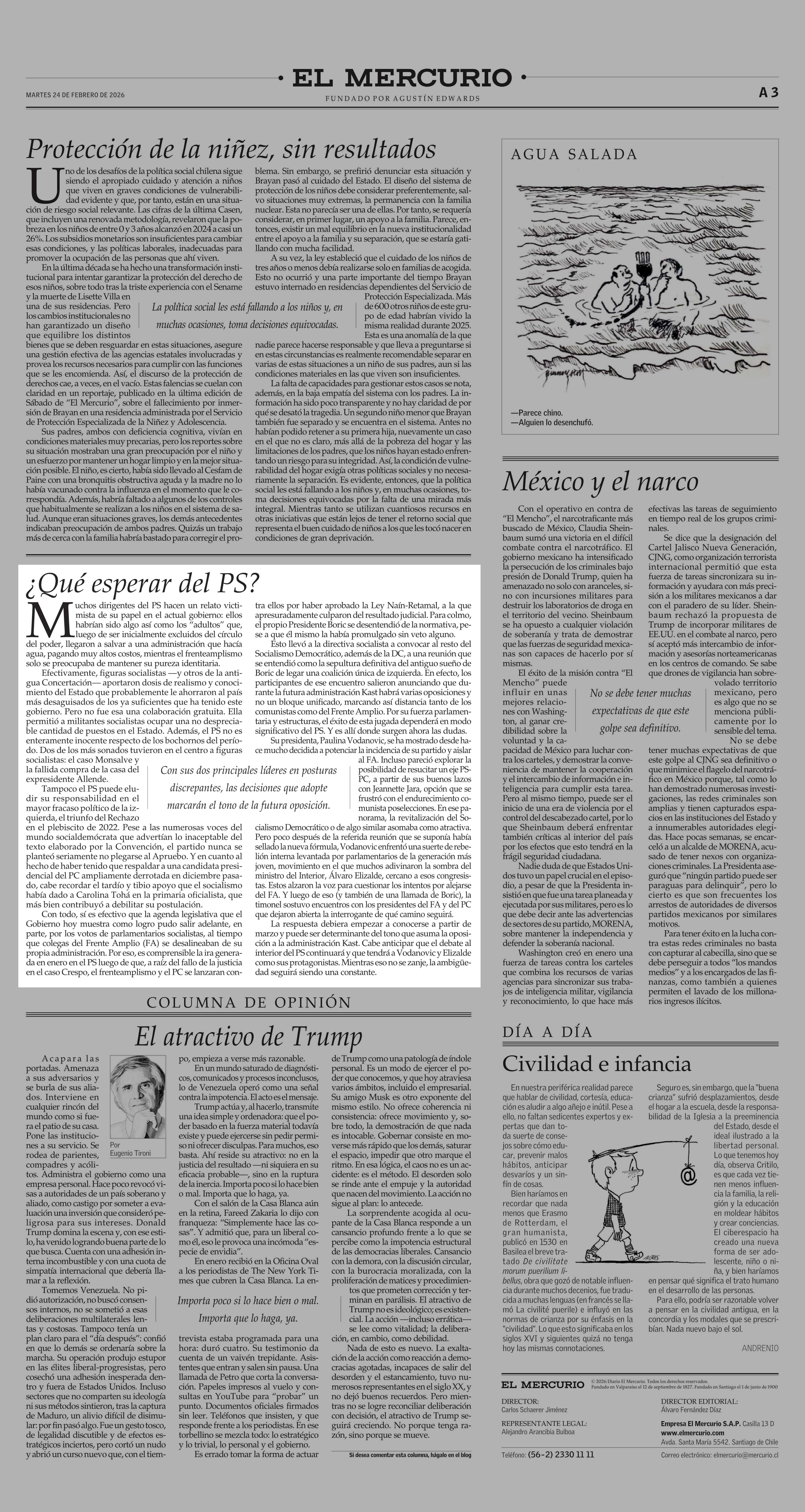 Editorial: ¿Qué esperar del PS? 24-02-2026 El Mercurio |