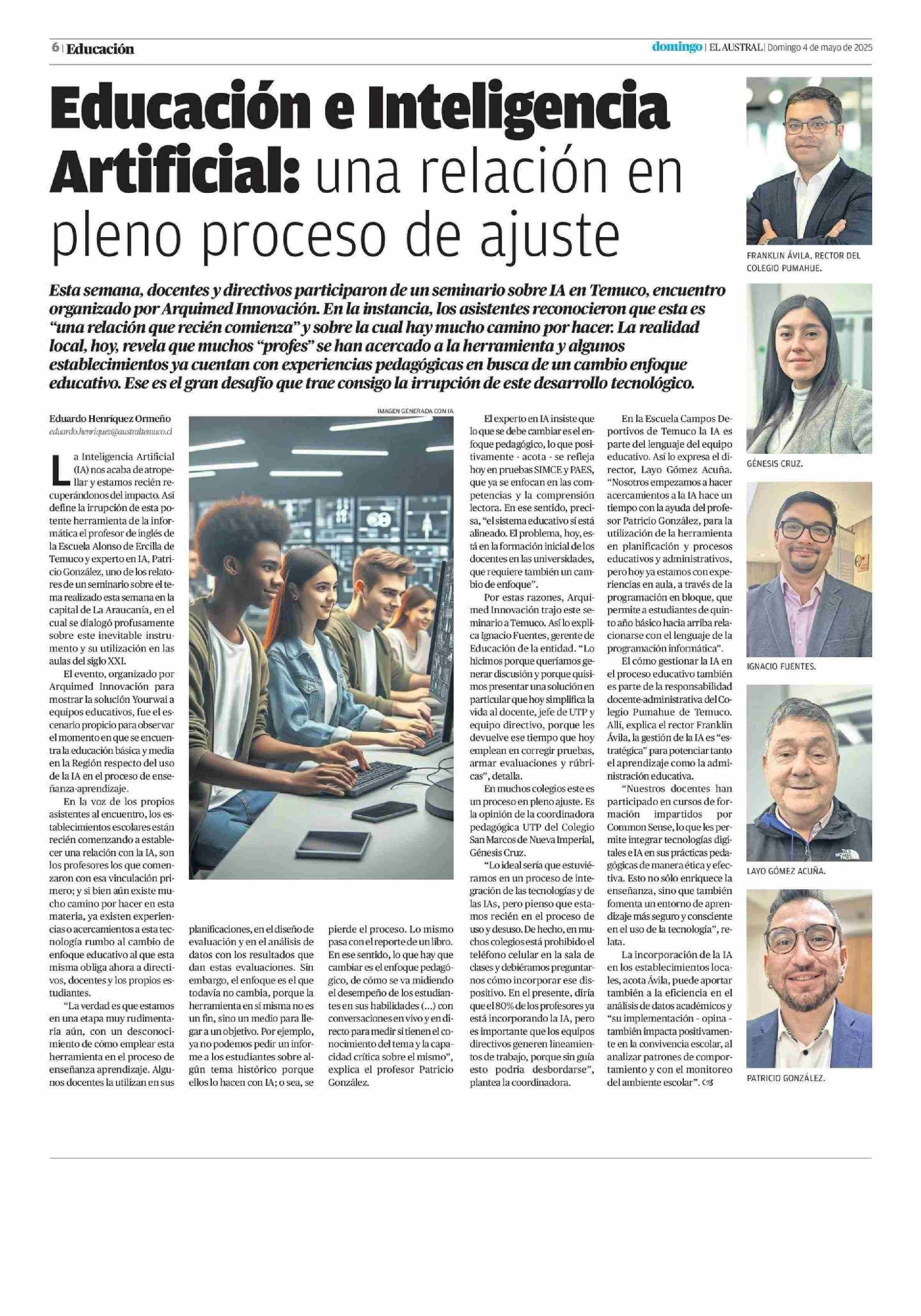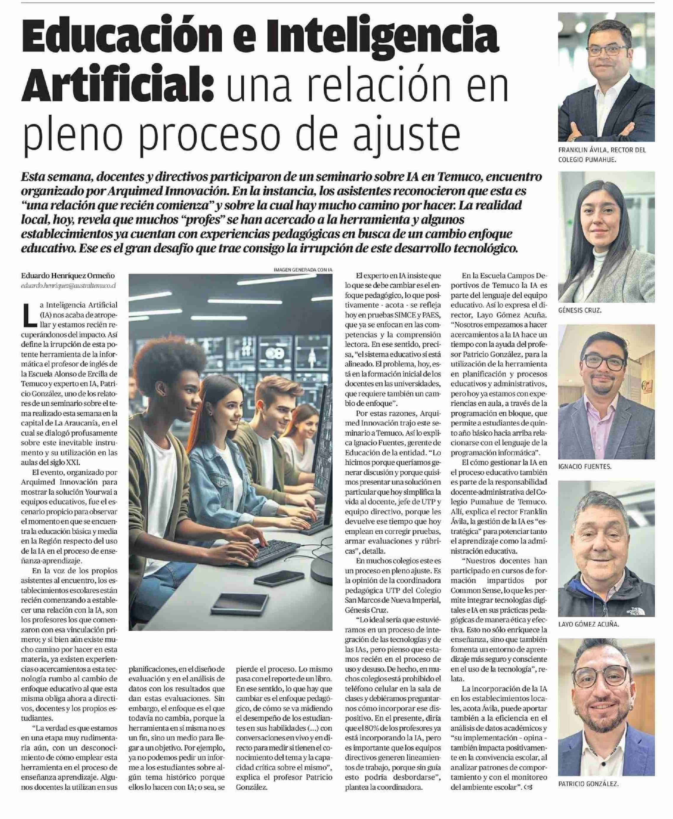 Educación e Inteligencia Artificial: una relación en pleno proceso de ajuste 04-05-2025 El Austral de la Araucanía |