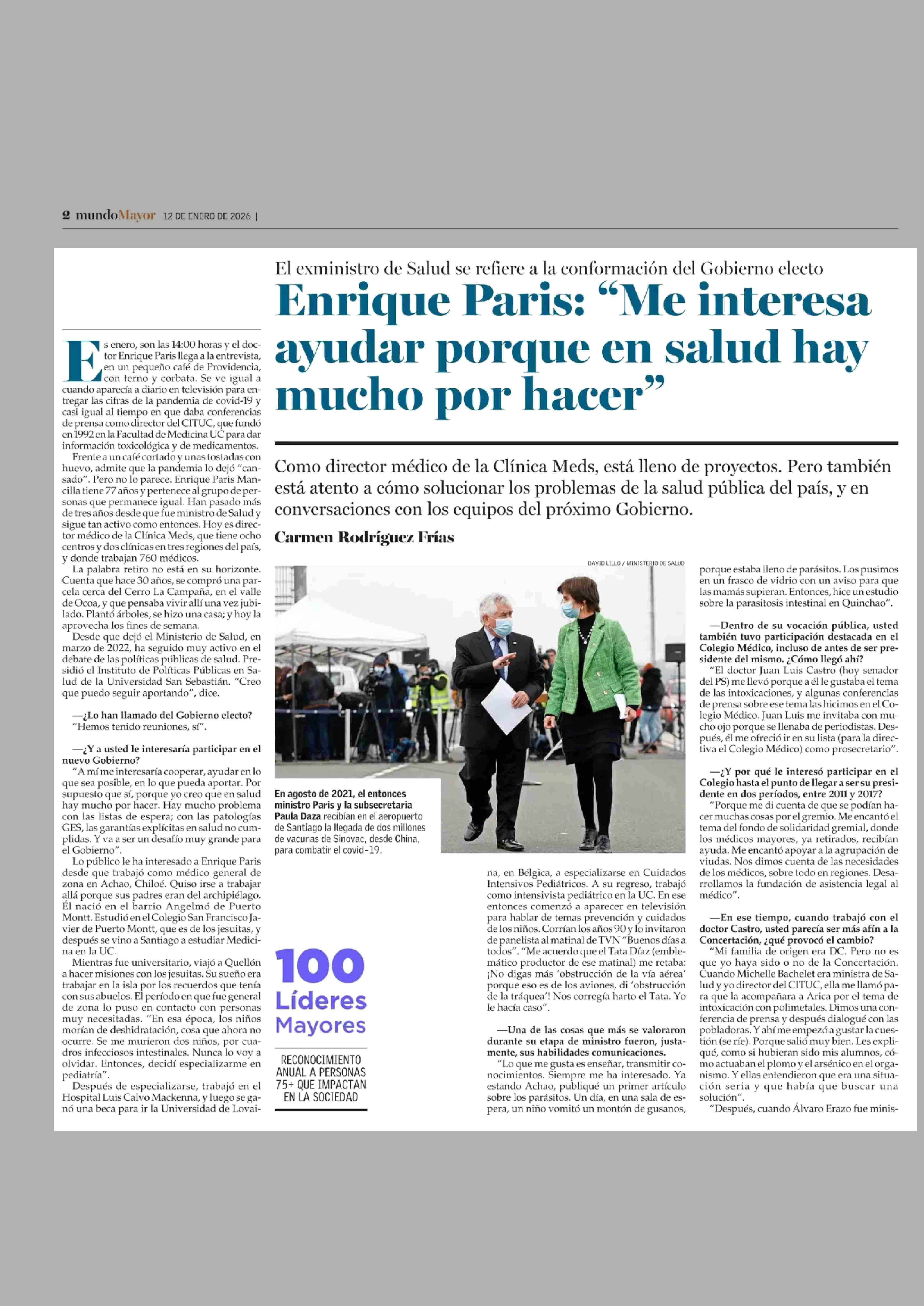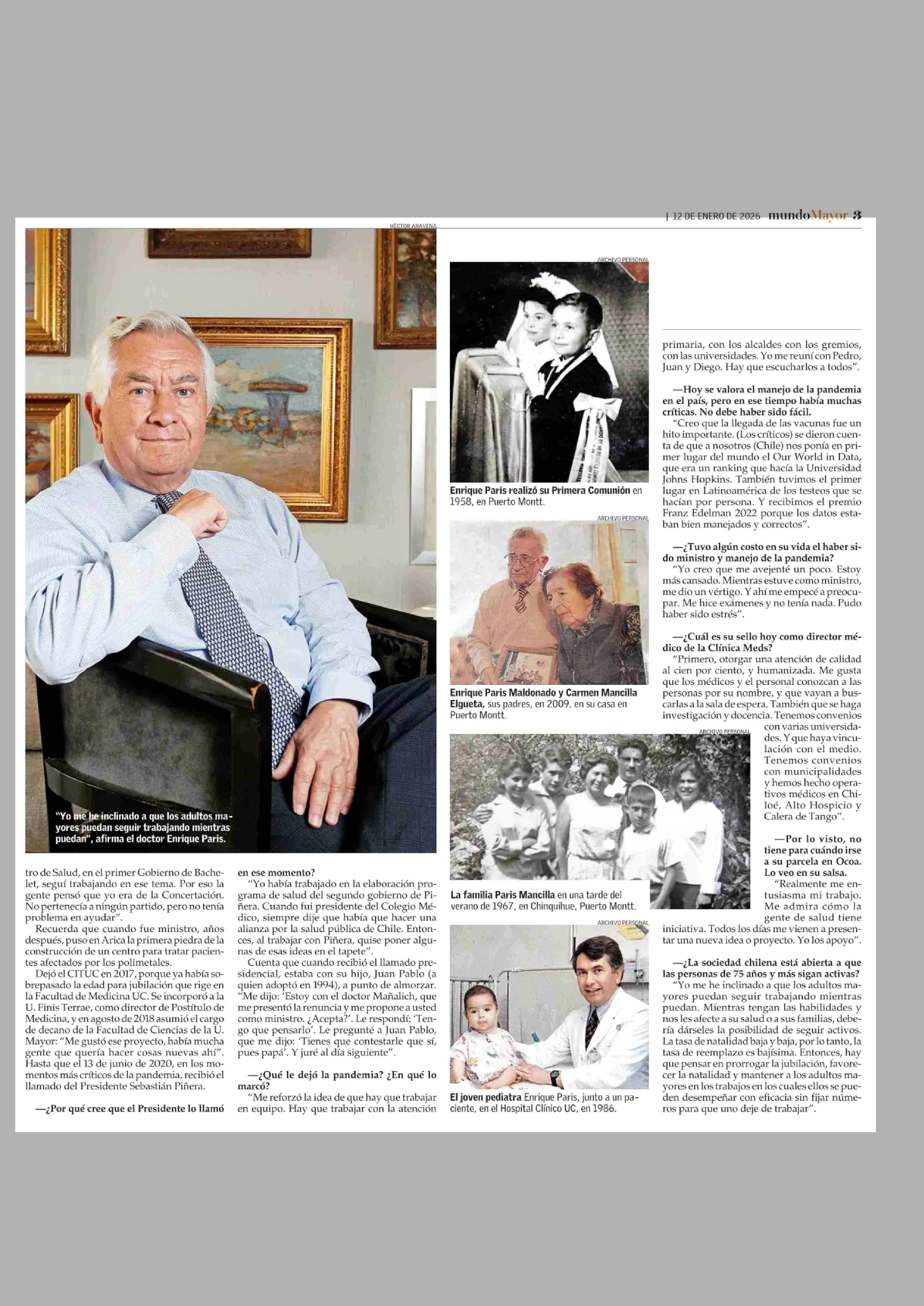 Enrique Paris: “Me interesa ayudar porque en salud hay mucho por hacer” 12-01-2026 El Mercurio |