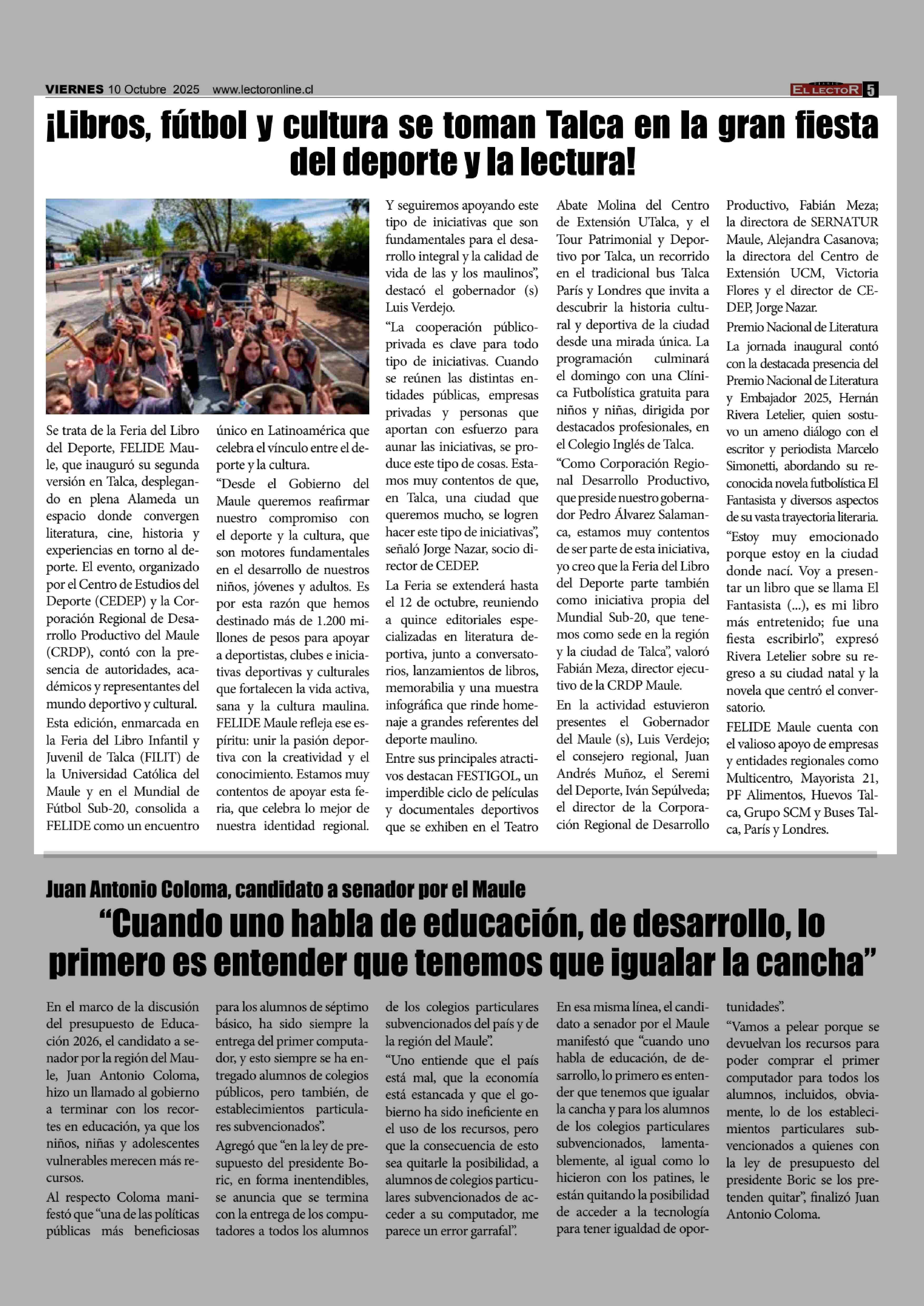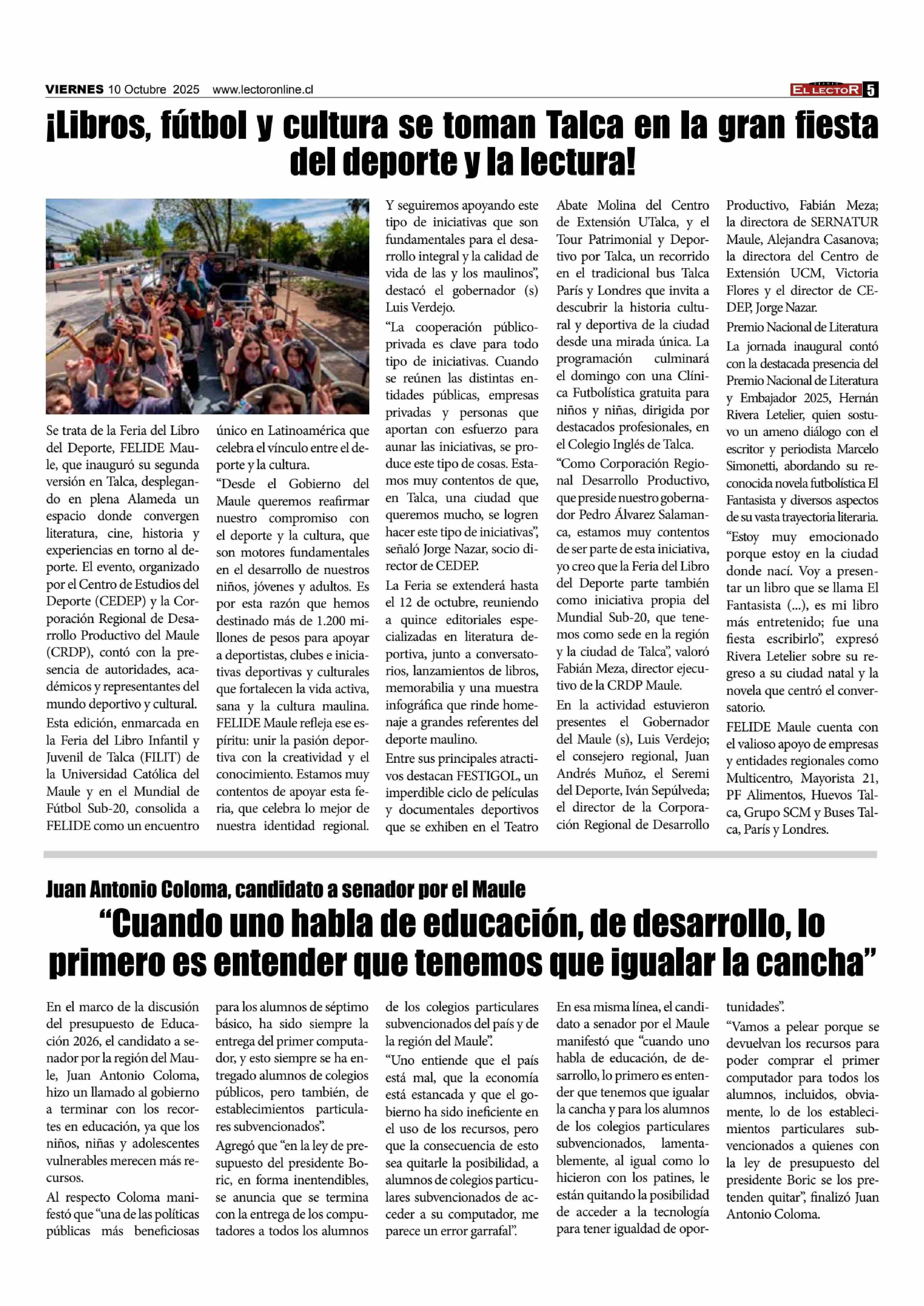 Título: ¡Libros, futbol y cultura se toman Talca en la gran fiesta del deporte y la lectura!