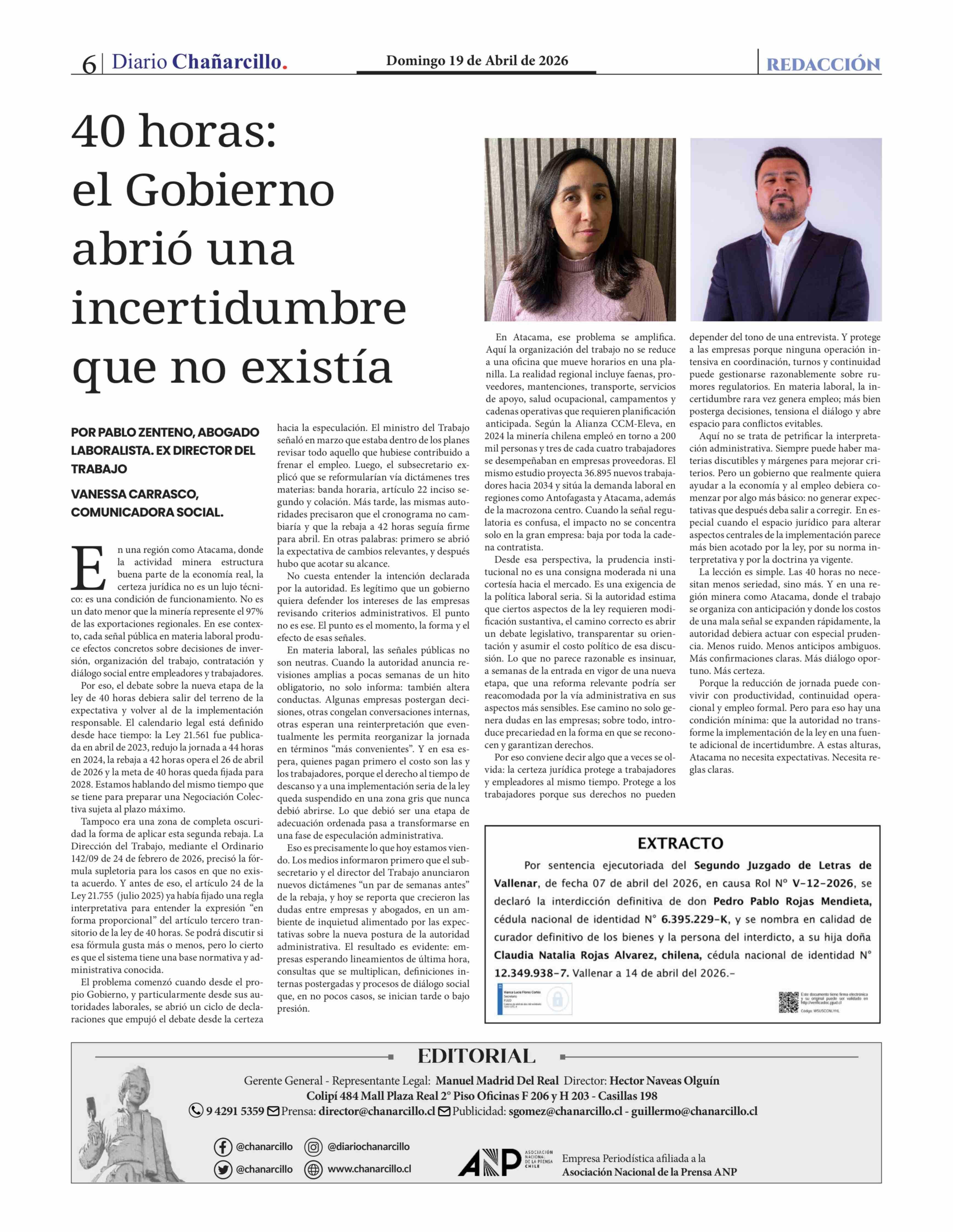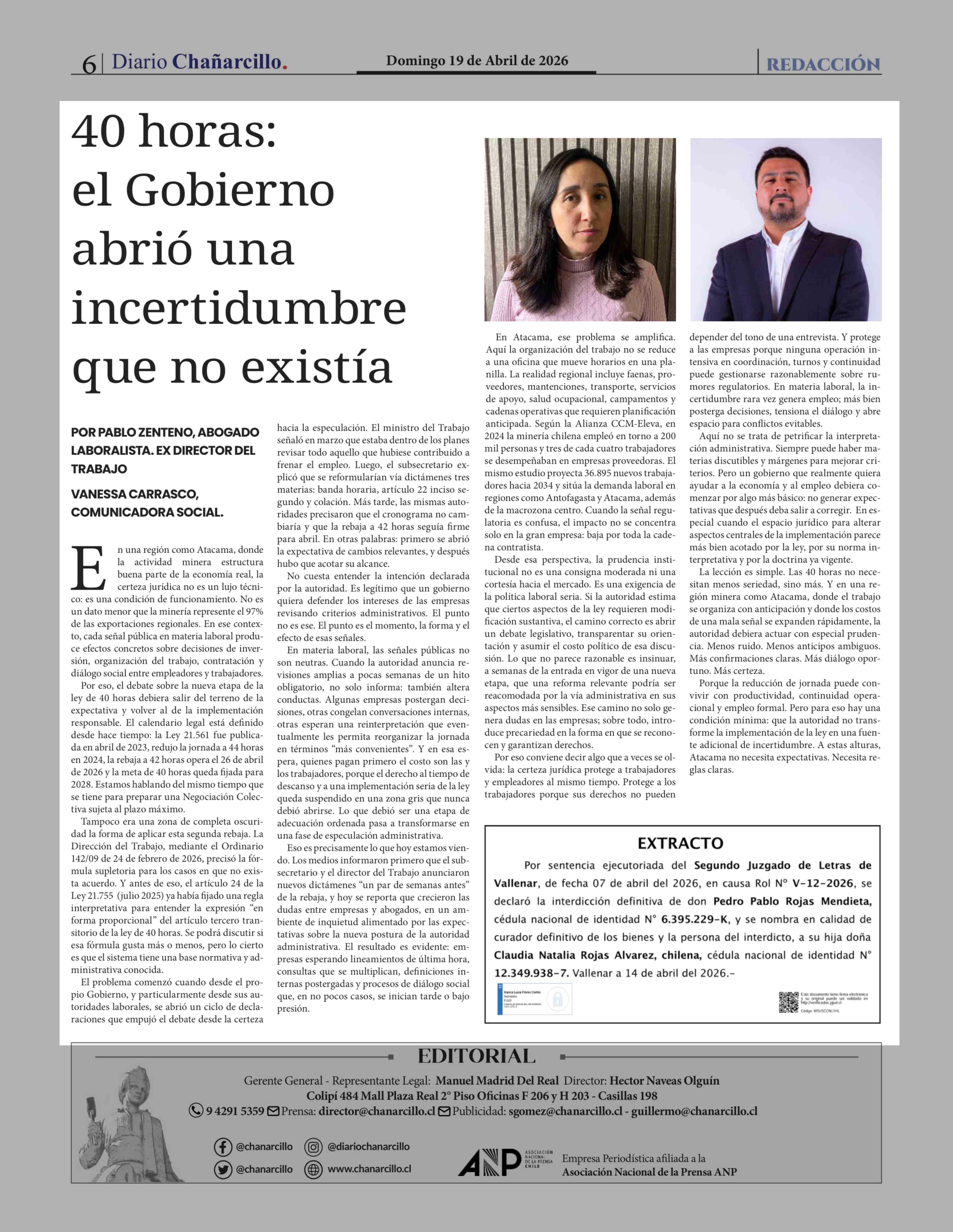 Fuente: Diario Chañarcillo (Diario Chanarcillo) Página(s): 6