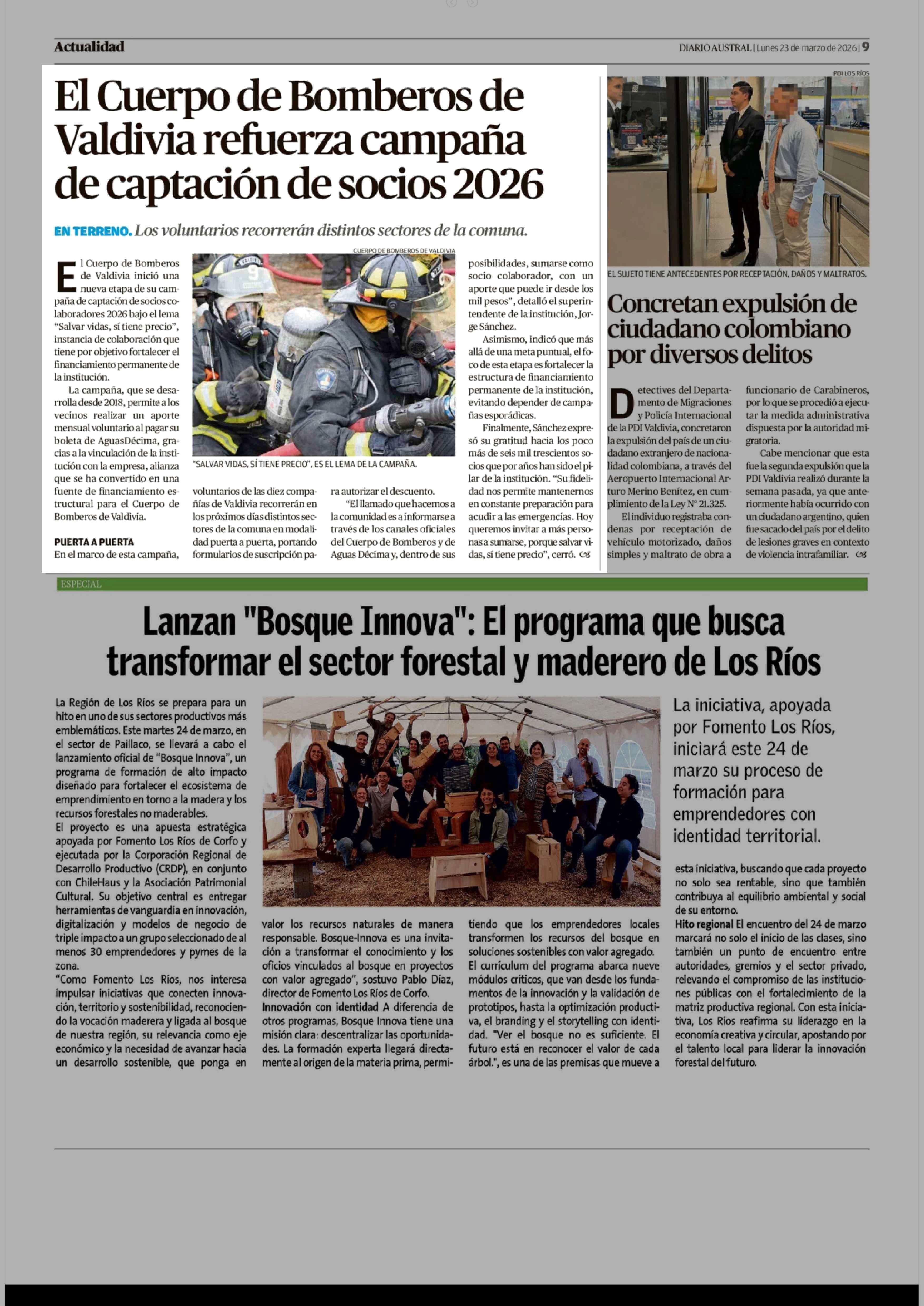 El Cuerpo de Bomberos de Valdivia refuerza campaña de captación de socios 2026 23-03-2026 Diario Austral Región de Los Ríos |