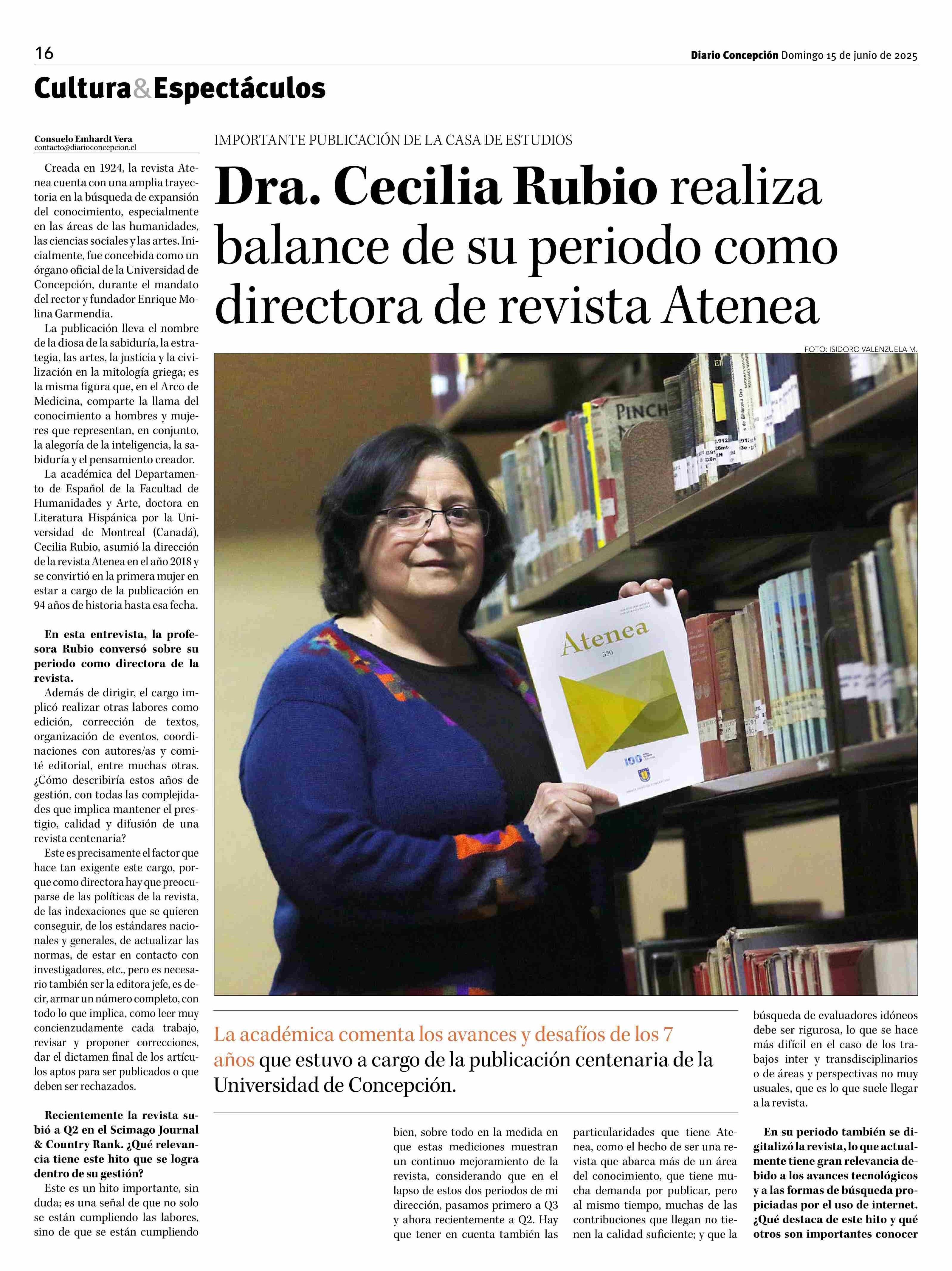 Título: Dra. Cecilia Rubio realiza balance de su periodo como directora de revista Atenea