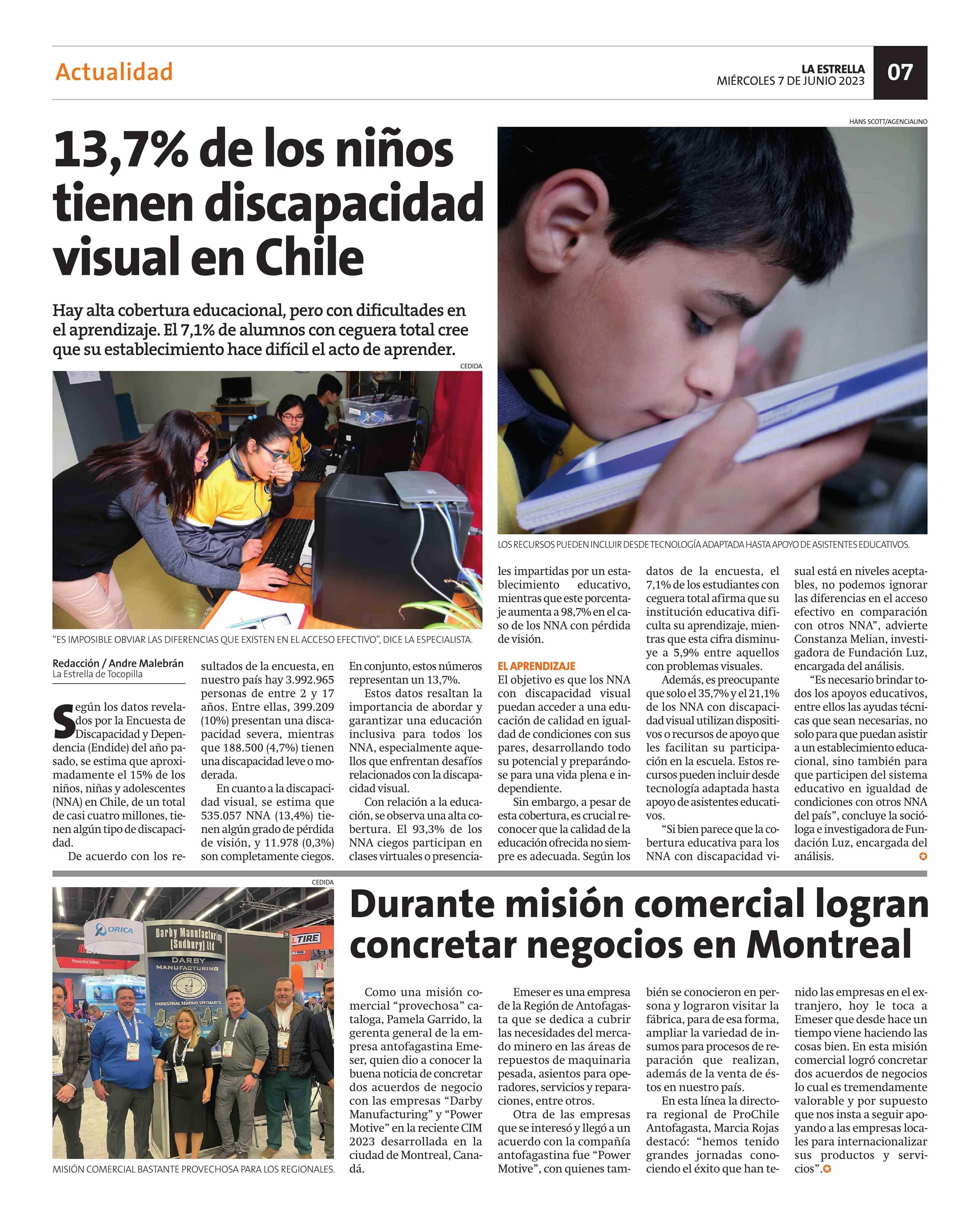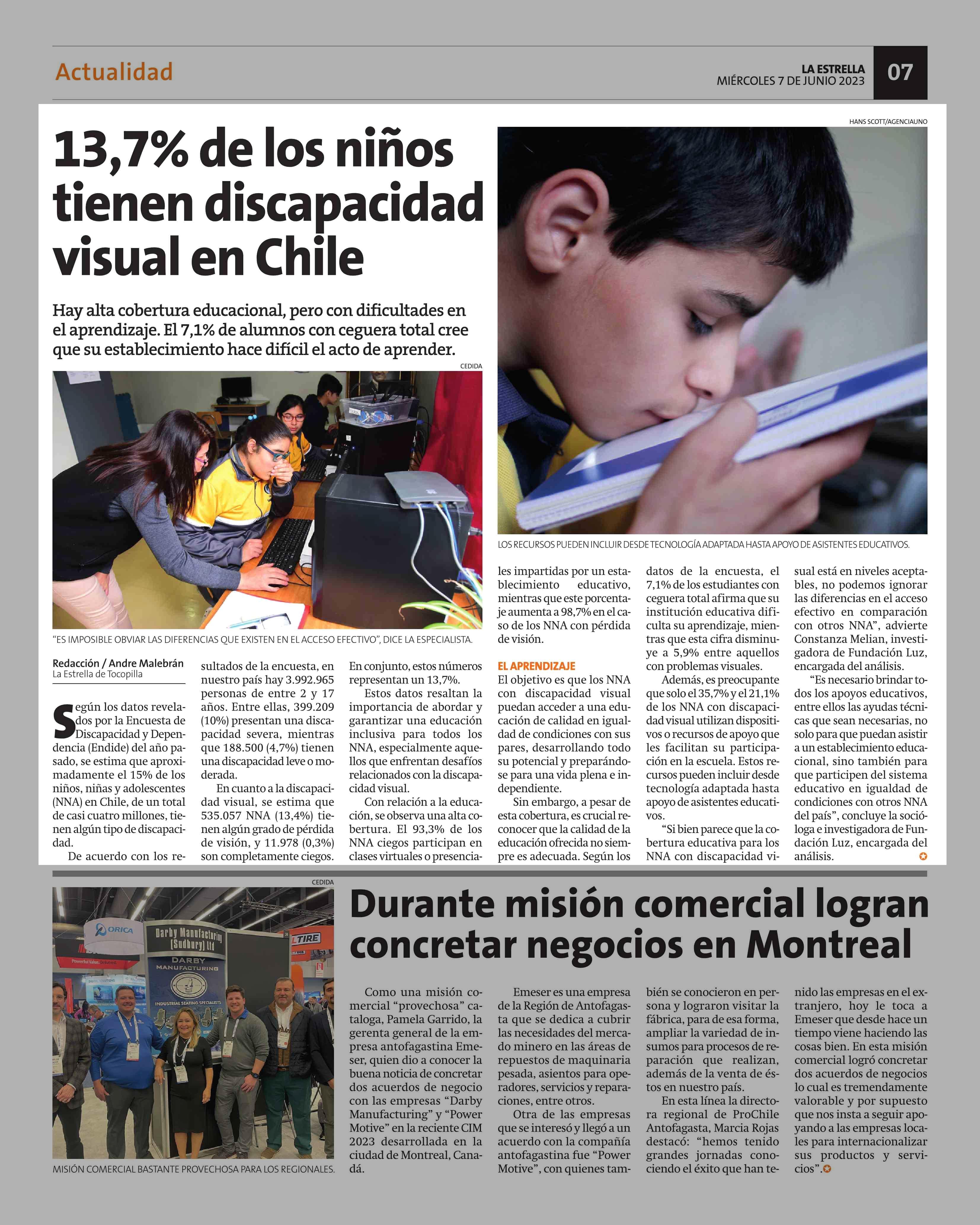 13,7% de los niños tienen discapacidad visual en Chile 07-06-2023 La Estrella de Tocopilla |