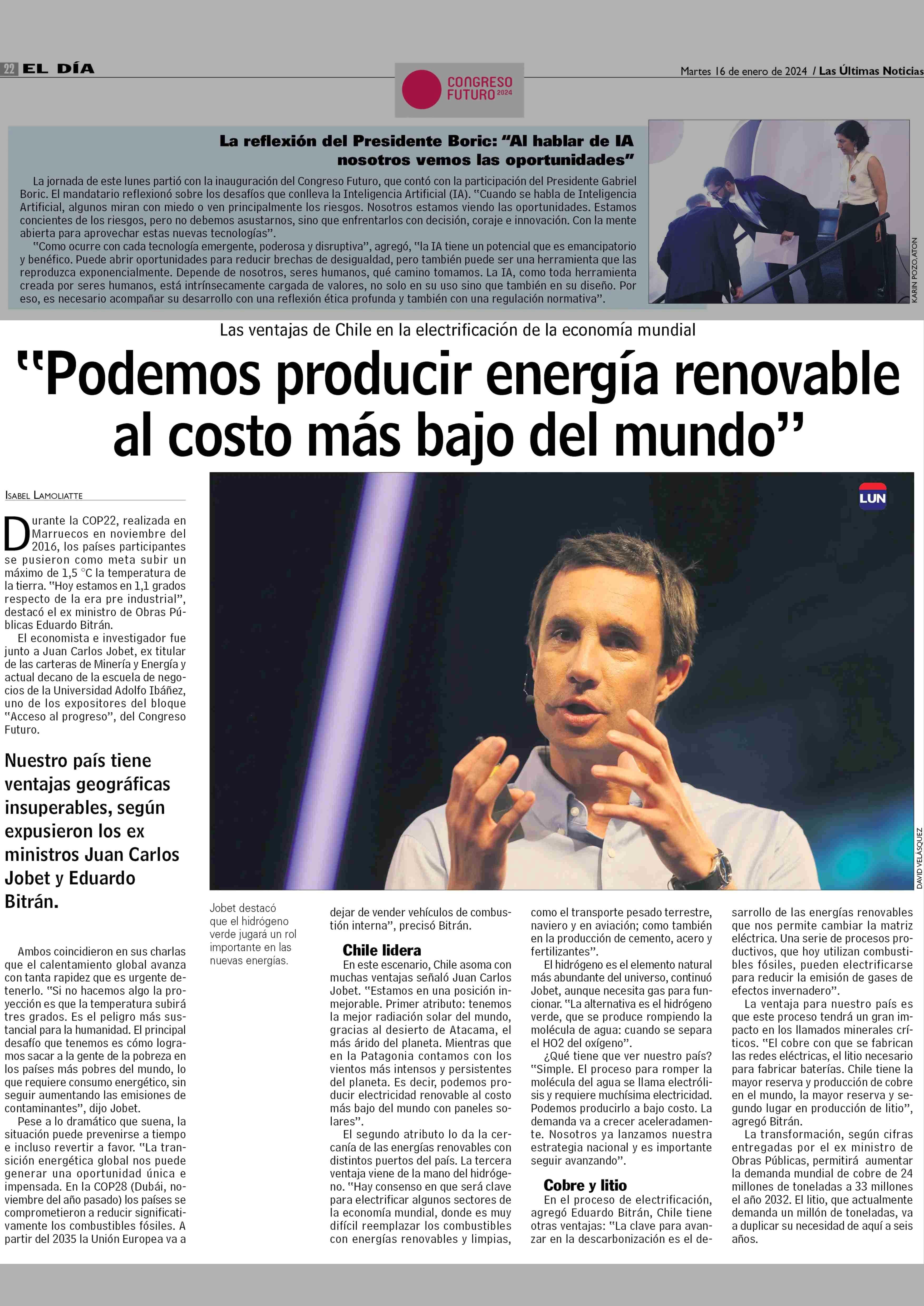 “Podemos producir energía renovable al costo más bajo del mundo”” 16-01-2024 Las Últimas Noticias |