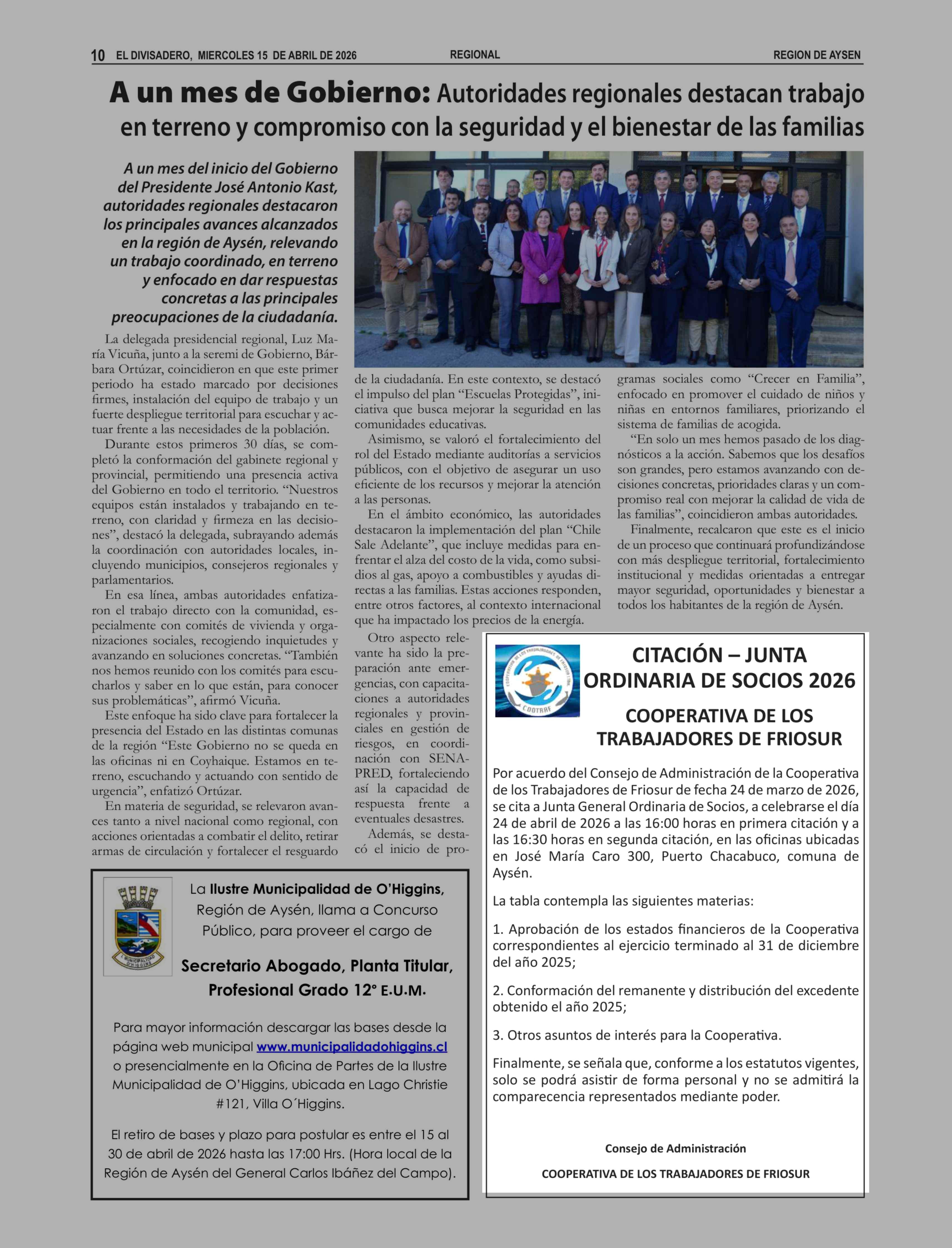 | Fecha: | 15-04-2026 | Sector: | Extractos | Región: | Región Aysén del General Carlos Ibáñez del Campo |