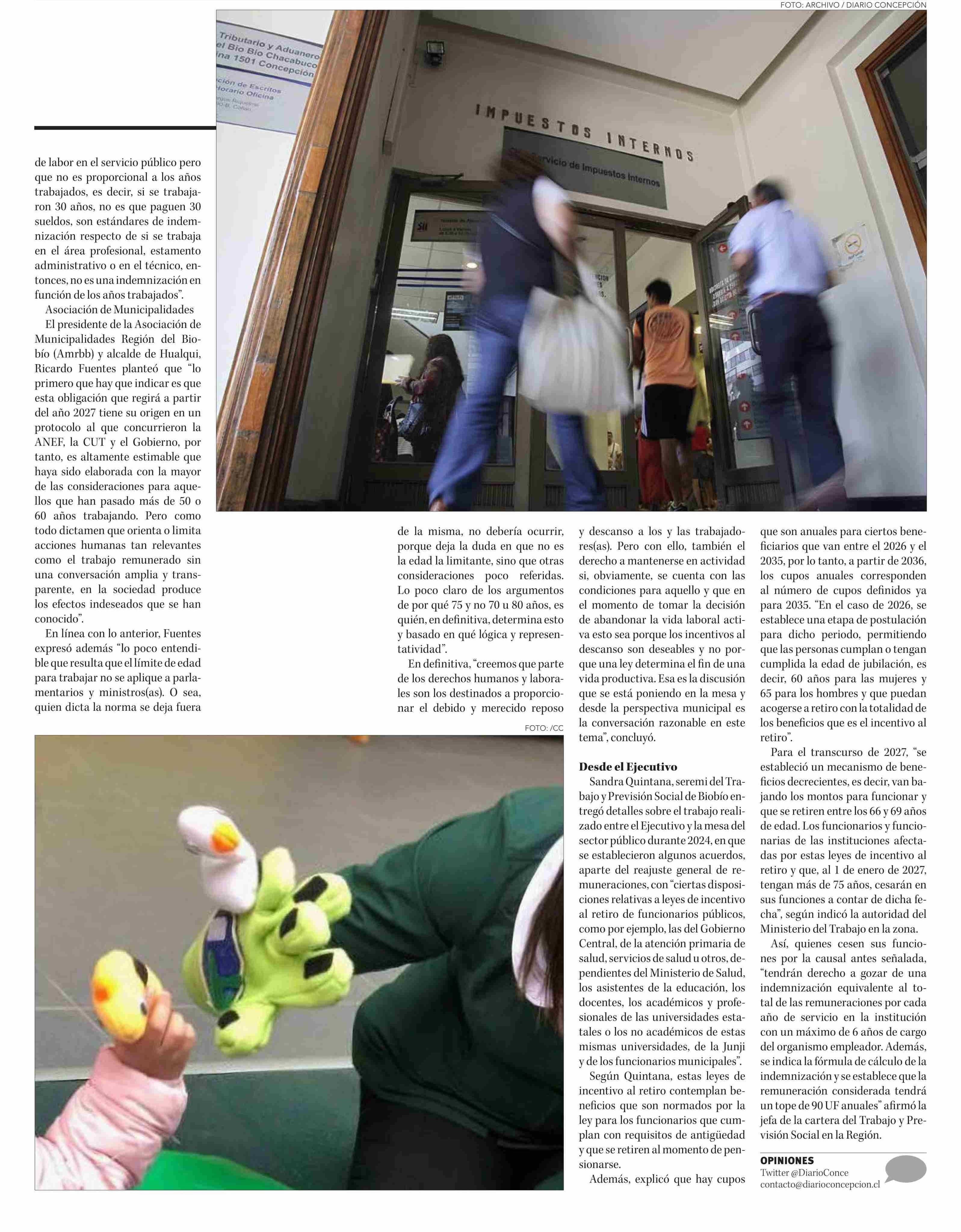 Biobío: Asociación de empleados fiscales rechaza tope de 75 años para continuidad laboral en la administración pública 11-06-2025 Diario Concepción |
