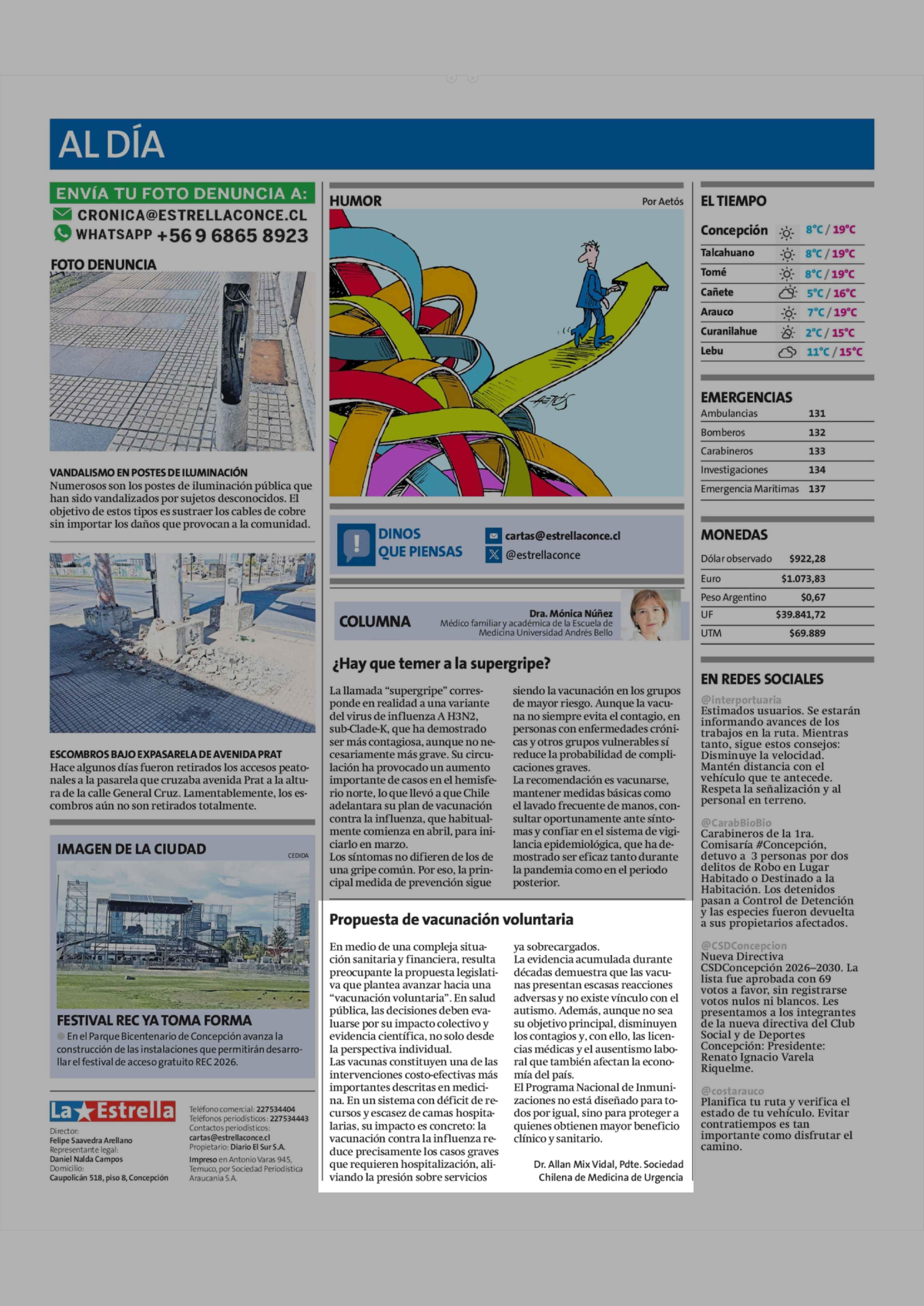 Columnas de Opinión: Propuesta de vacunación voluntaria 24-03-2026 La Estrella de Concepción |
