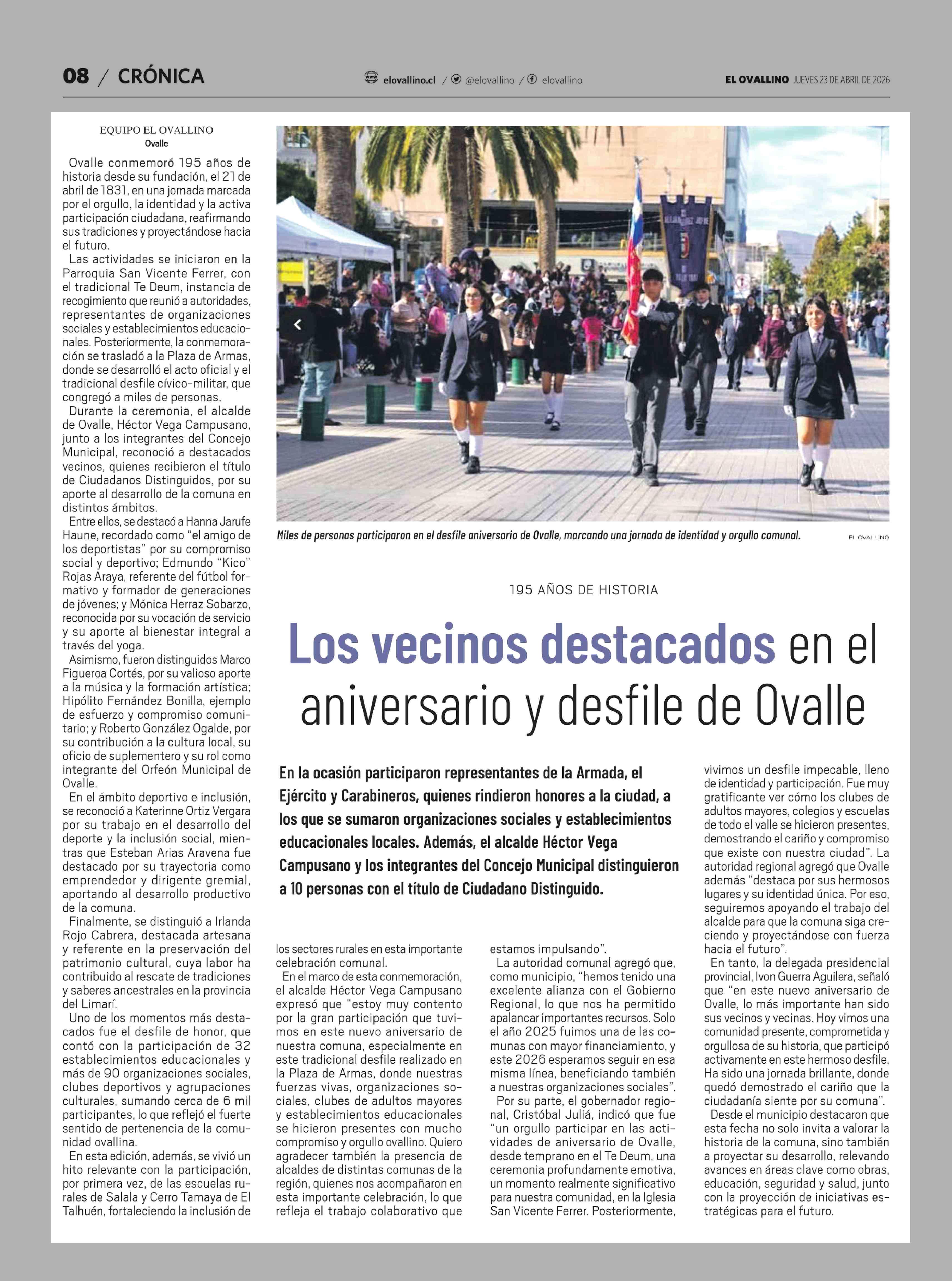 Título: Los vecinos destacados en el aniversario y desfile de Ovalle