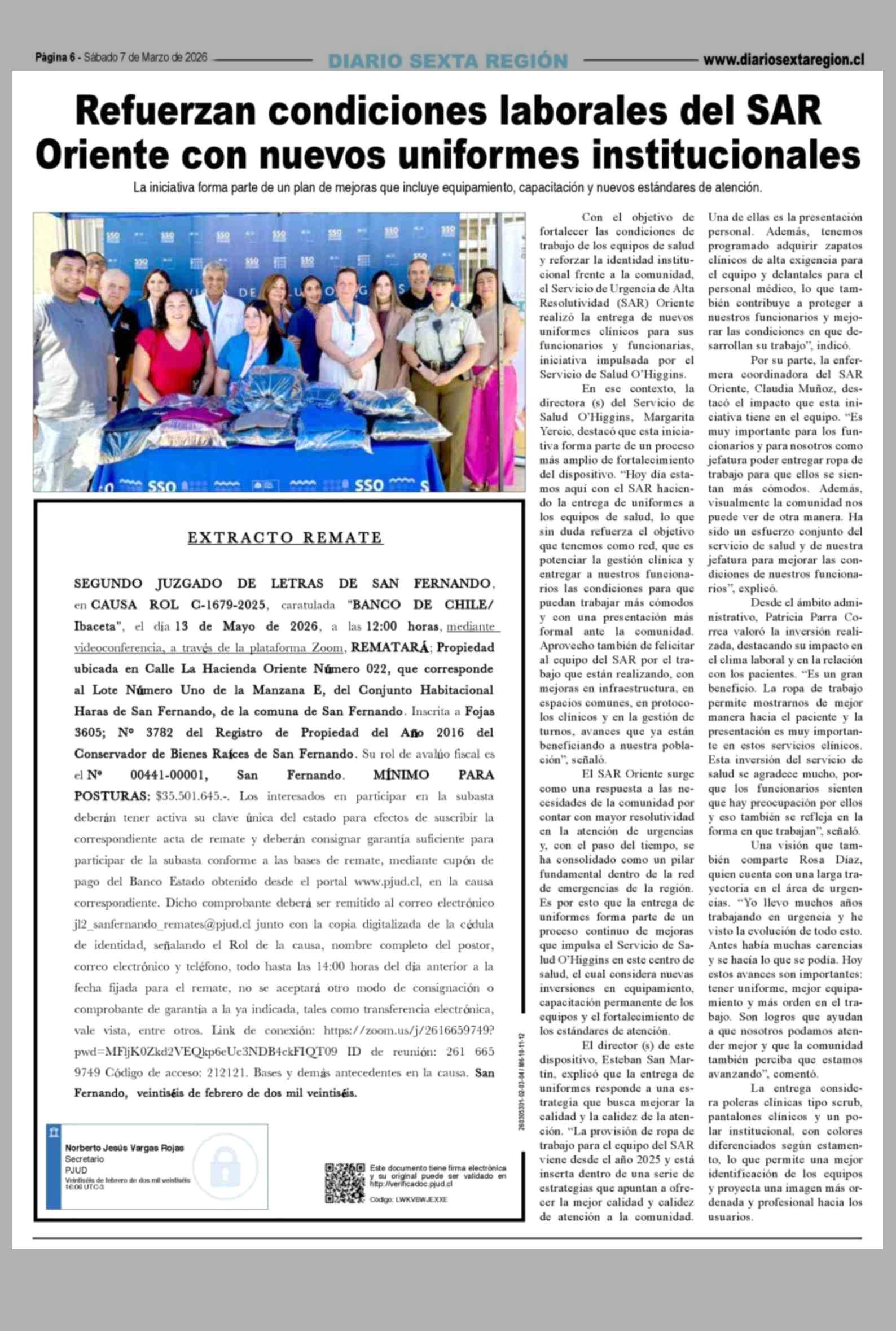 | Fecha: | 07-03-2026 | Sector: | Noticia general | Región: | Región del Libertador General Bernardo O'Higgins |