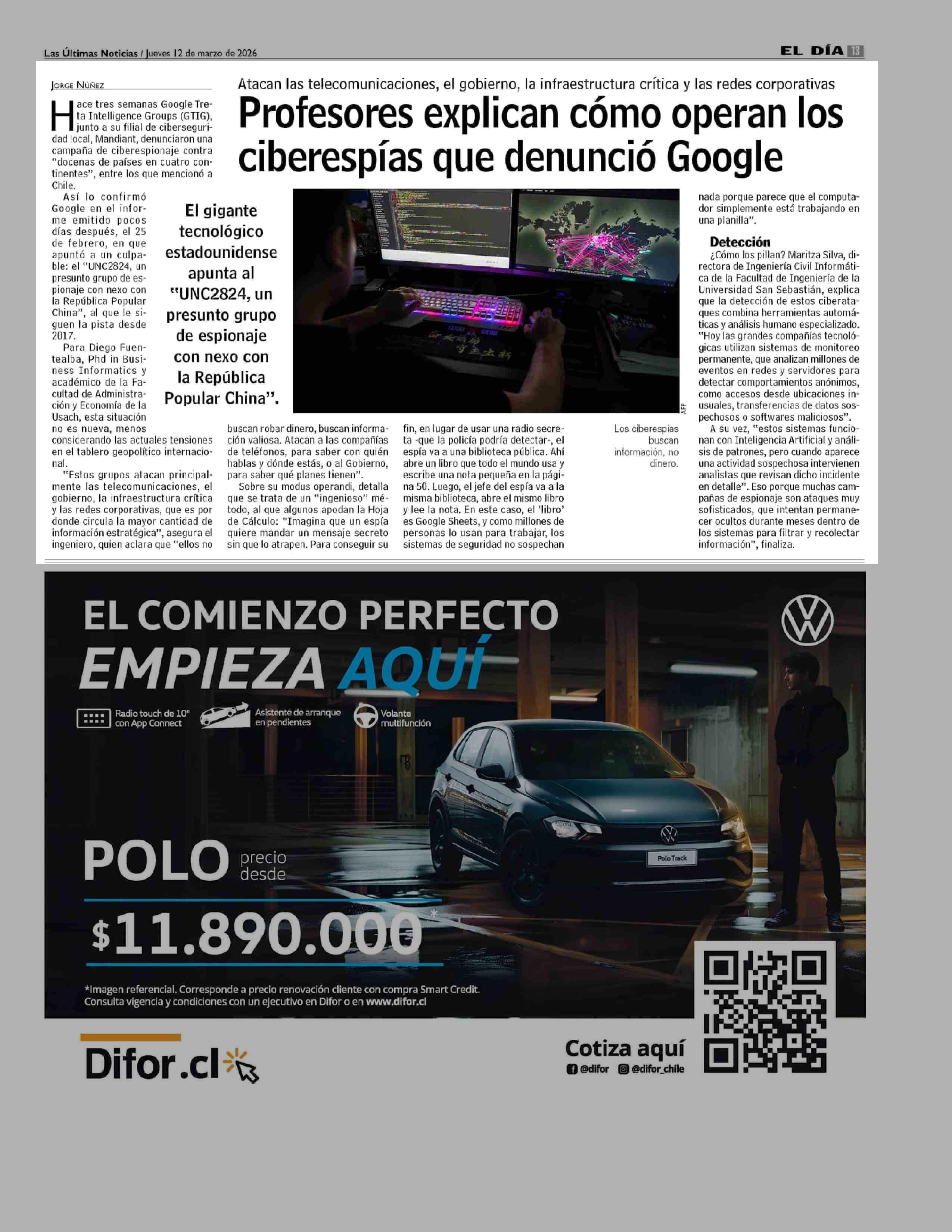 Profesores explican cómo operan los ciberespías que denunció Google 12-03-2026 Las Últimas Noticias |