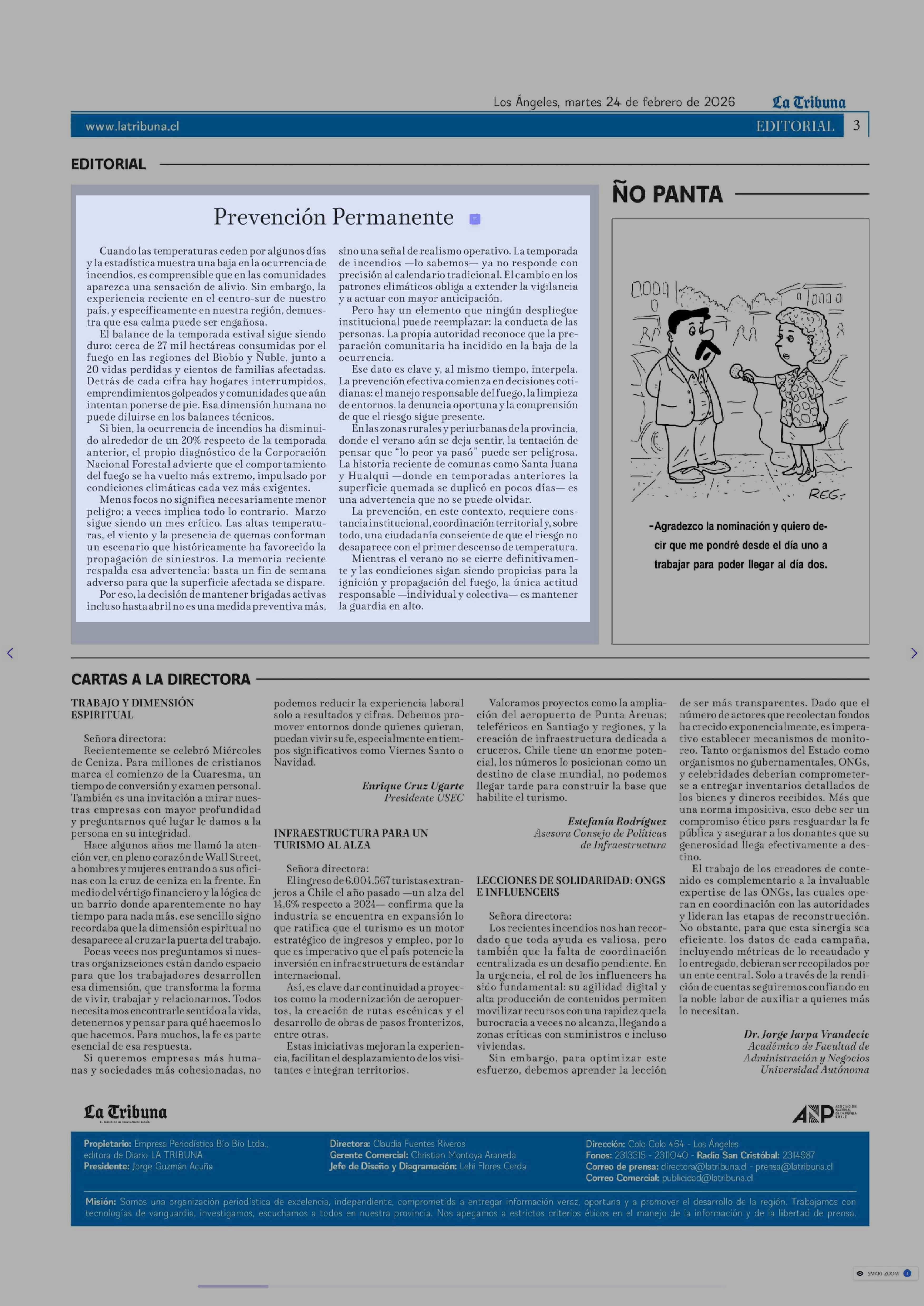 Editorial: Prevención Permanente 24-02-2026 La Tribuna |