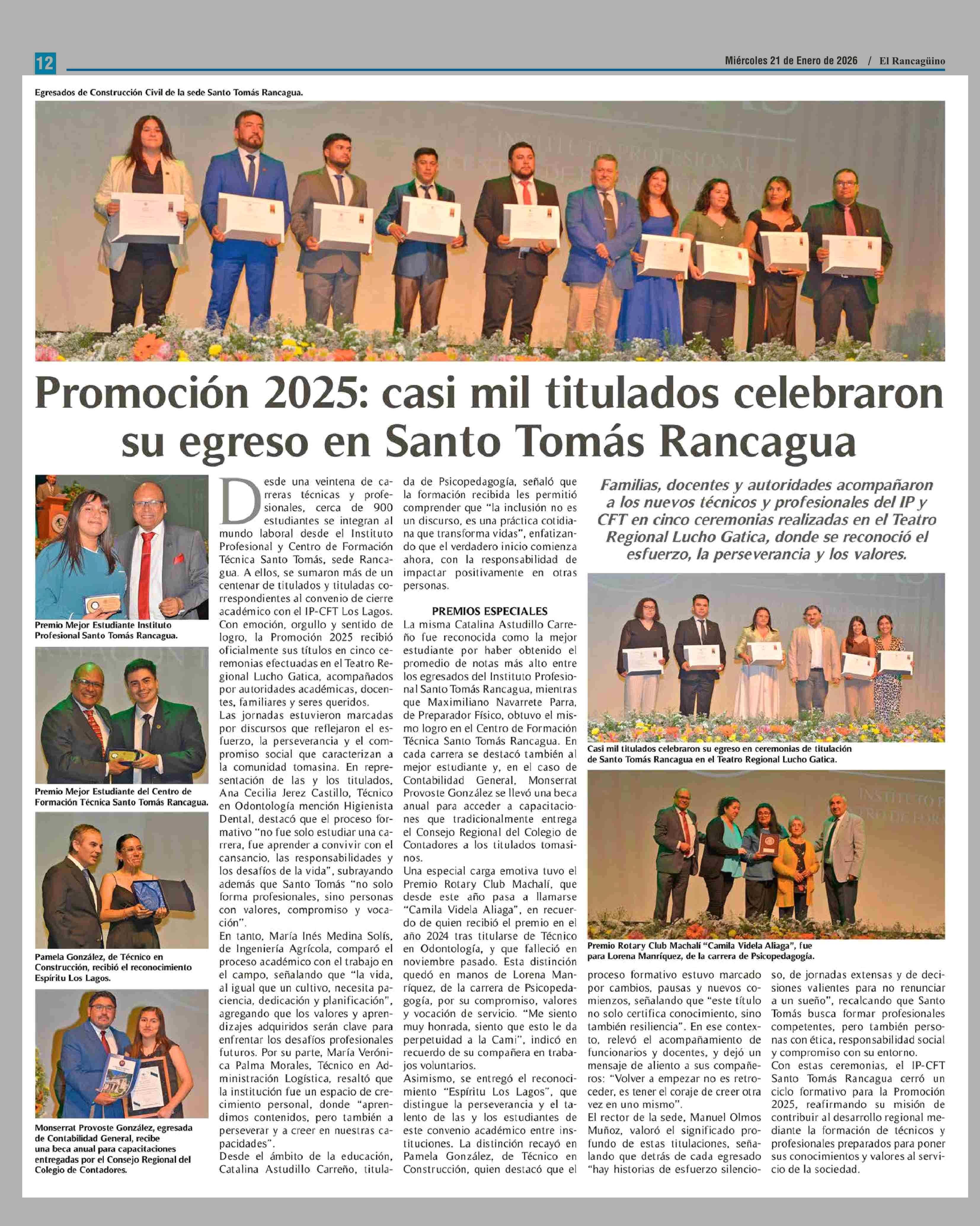 Promoción 2025: casi mil titulados celebraron su egreso en Santo Tomás Rancagua 21-01-2026 El Rancagüino |